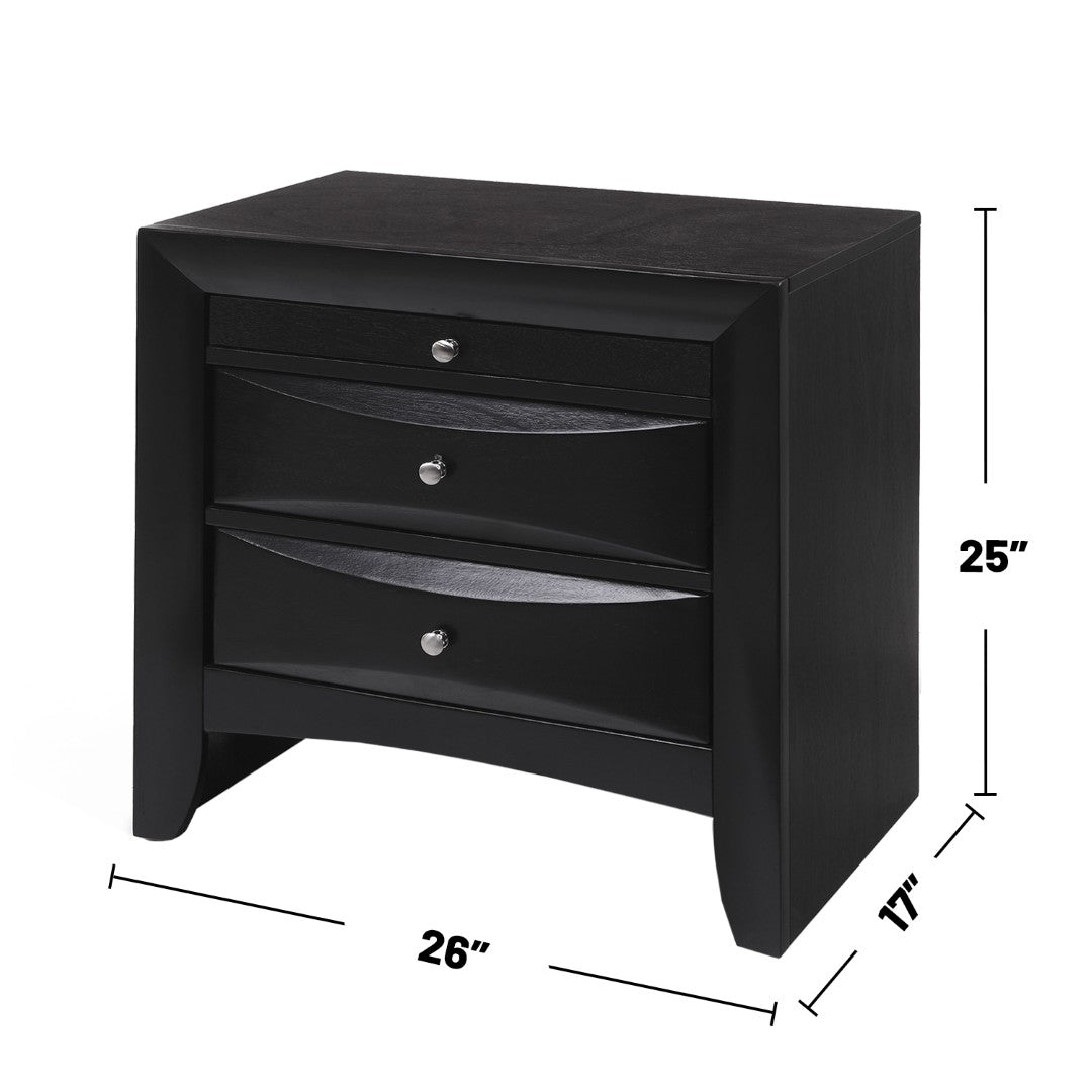 This elegant wooden nightstand combines classic craftsmanship with modern utility, offering ample organized storage and a sleek black finish to complement a variety of bedroom styles. Thoughtfully designed features—like dovetail drawer construction and smooth metal glides—ensure durability and everyday convenience, while the pull-out tray provides extra usable surface when you need it.