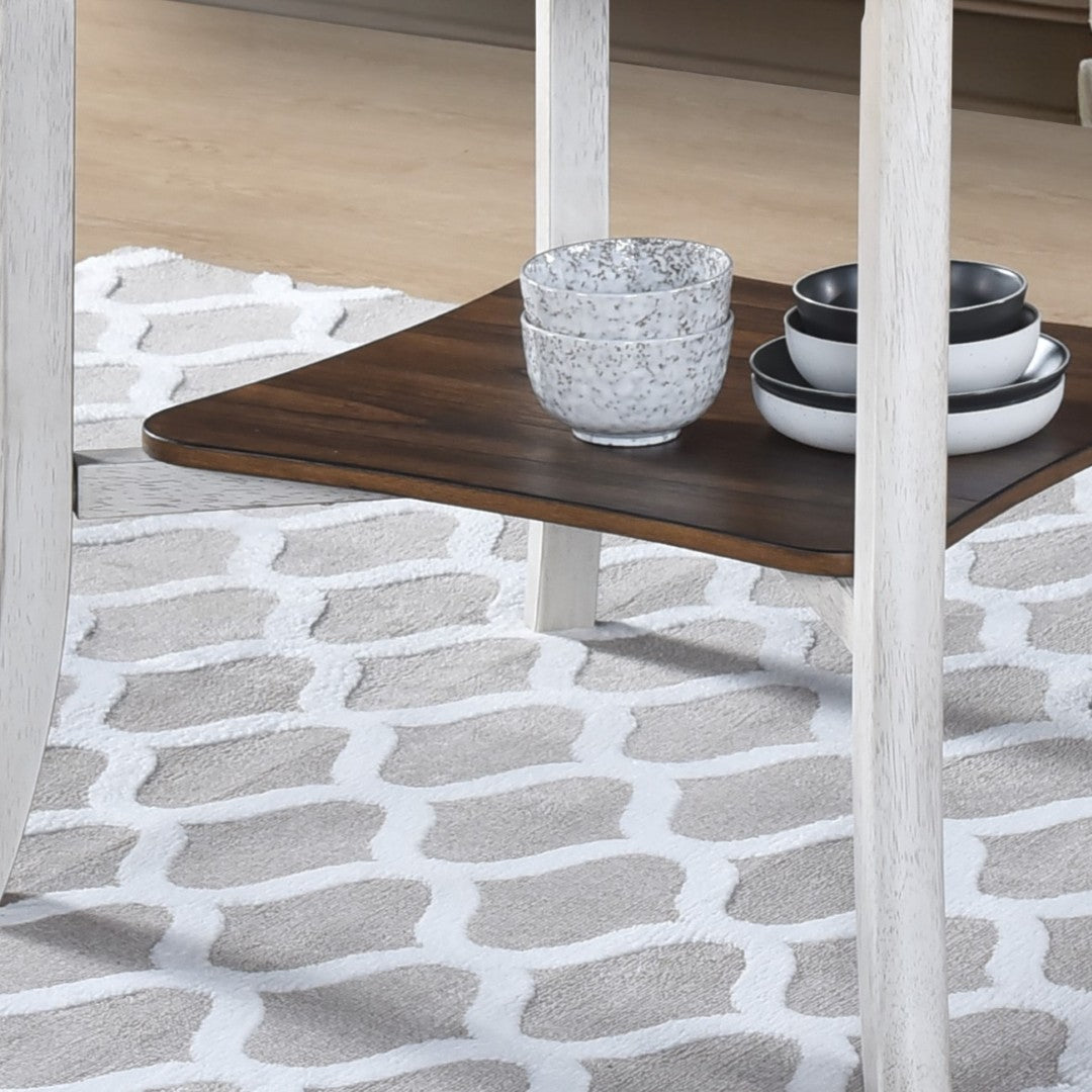 - Two-tone Finish: Walnut-finished tabletop paired with an antique white base for a classic, versatile look