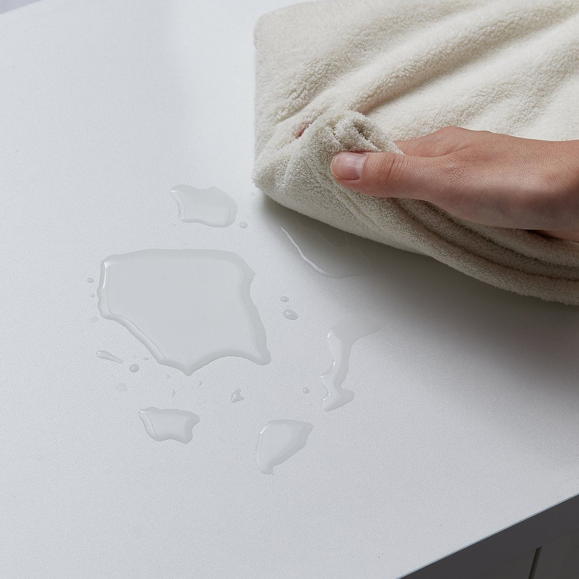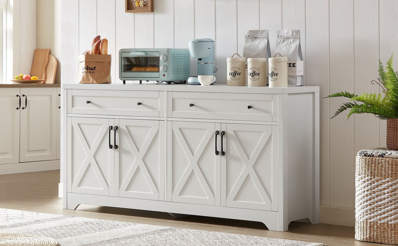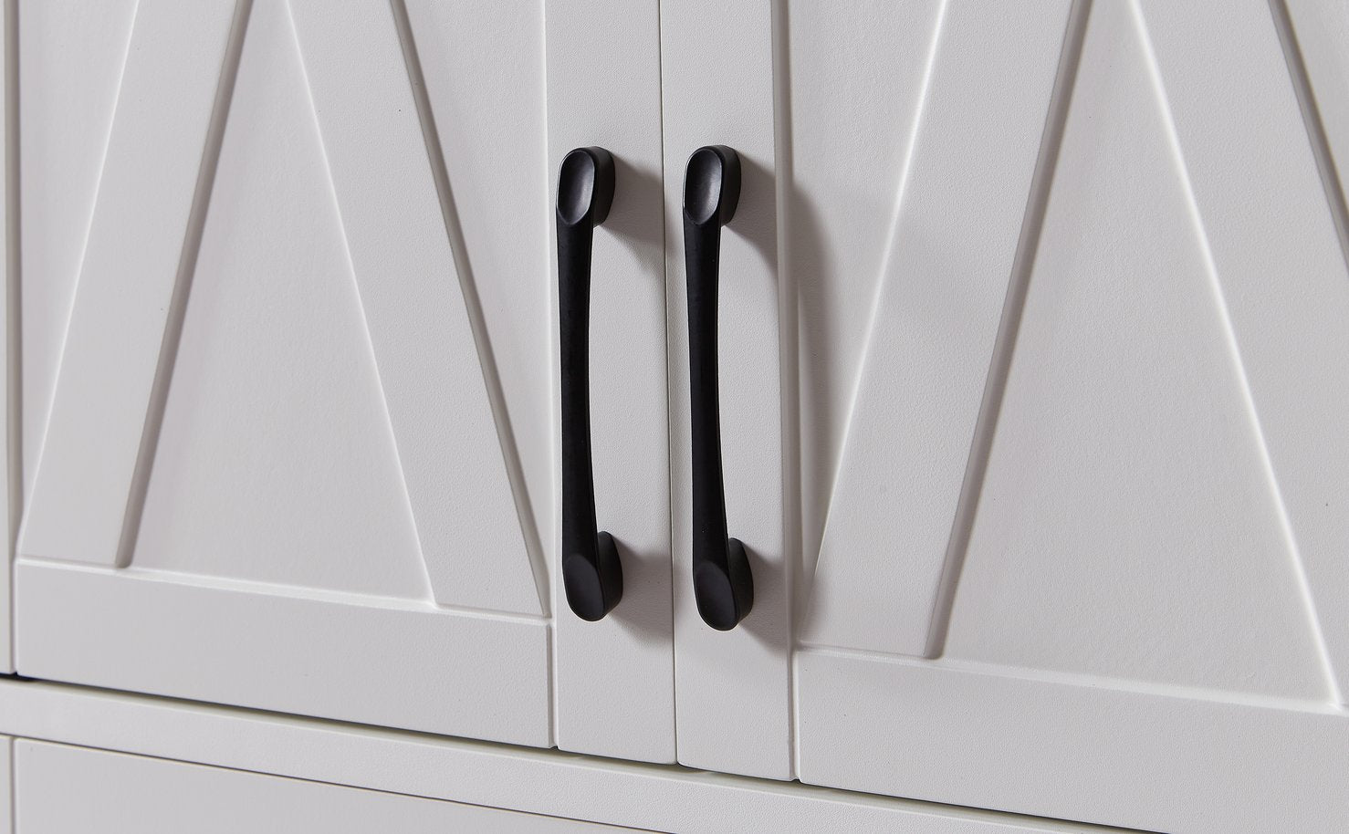 - White finish with smooth lines and tempered glass accents for a contemporary, understated luxury appearance