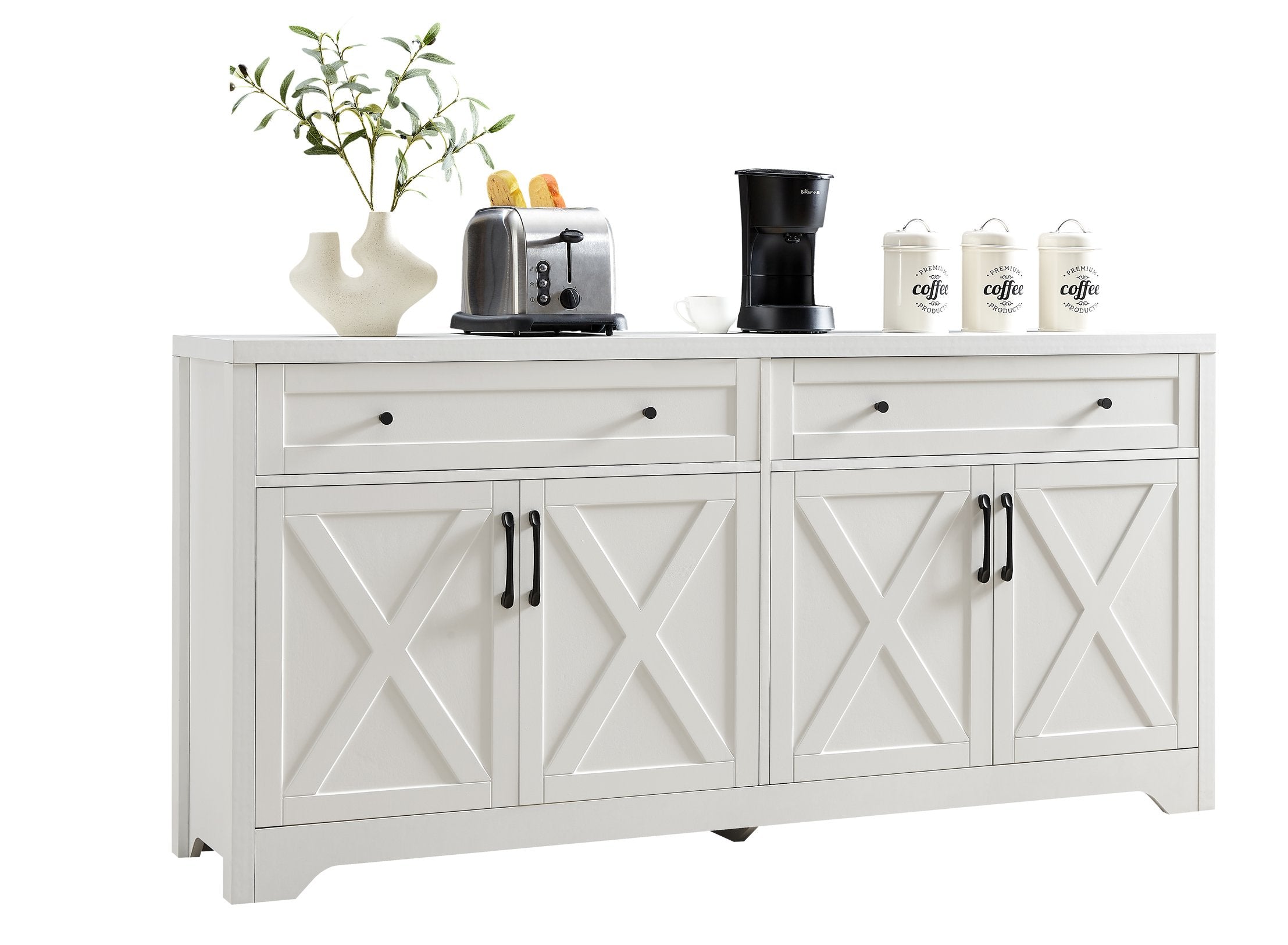 Bring clean, modern style and smart storage to your living area with this multifunctional TV cabinet. Designed for versatility, it combines display space, concealed storage and a sturdy TV surface to create a streamlined centerpiece for living rooms, bedrooms or offices. The white finish and tempered glass accents deliver a subtle, contemporary look while durable engineered wood construction and anti-tip hardware ensure dependable long-term use.