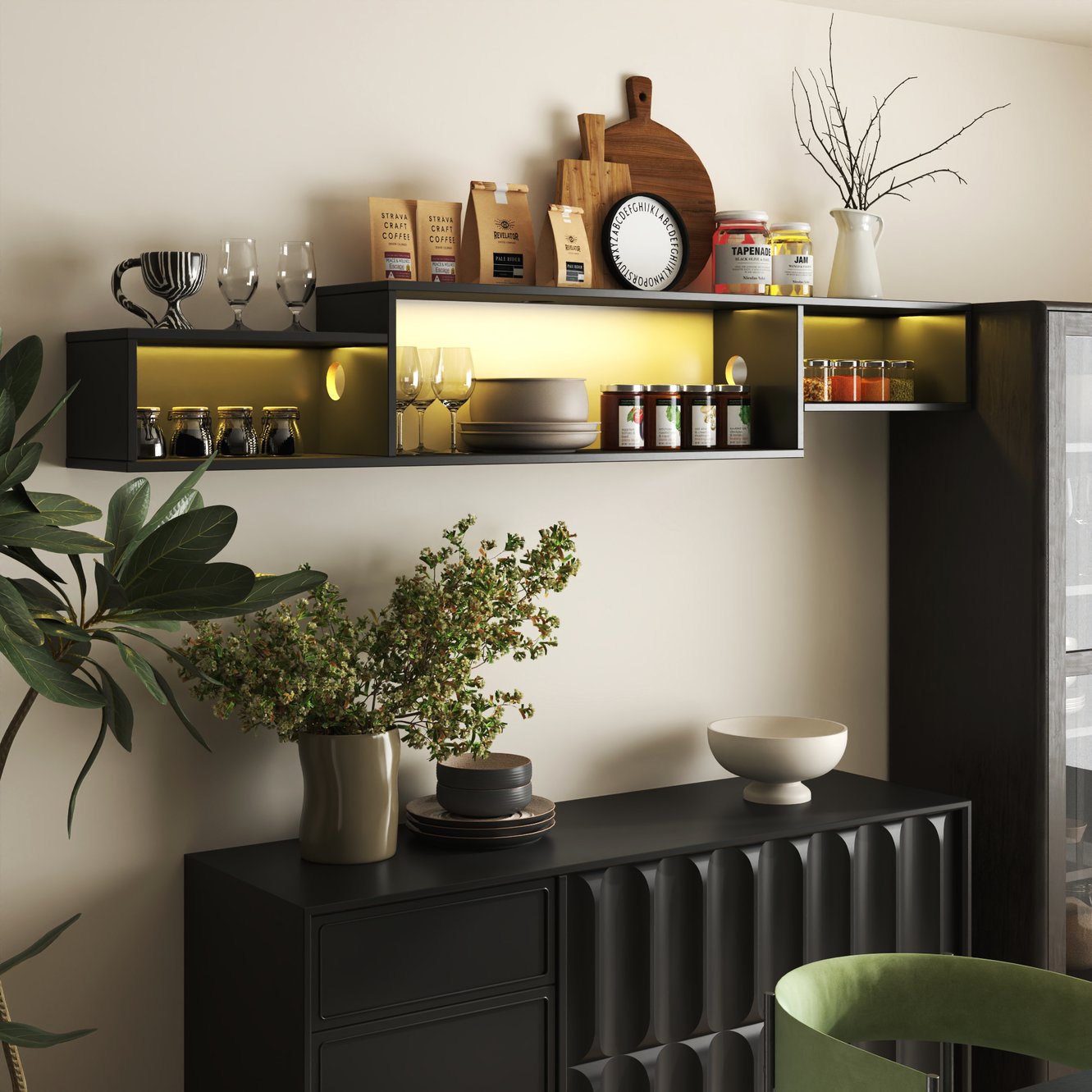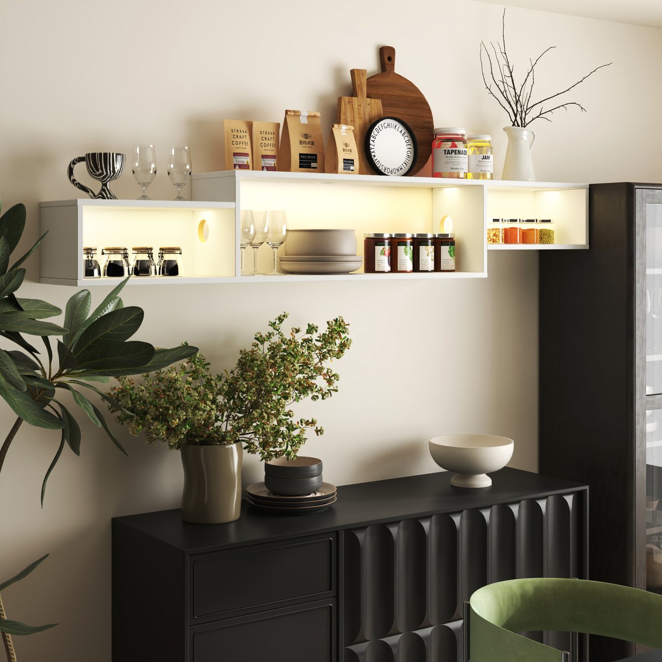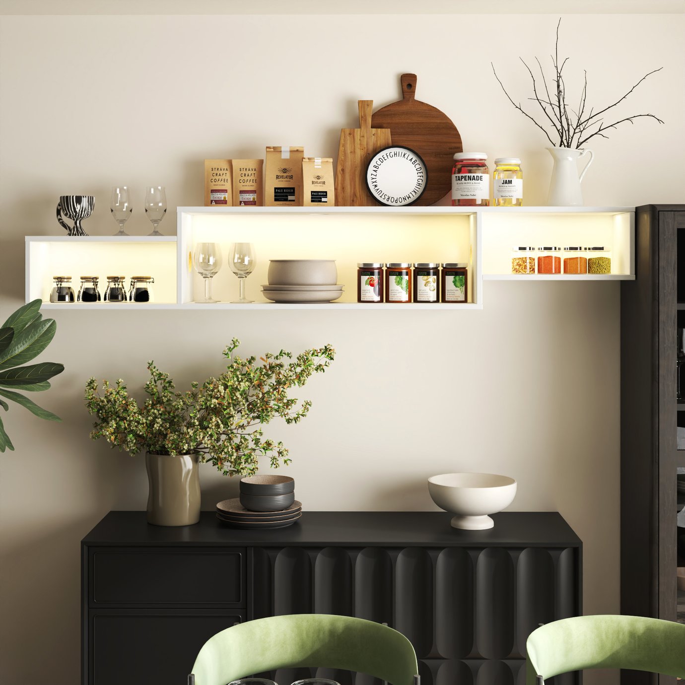 - Floating wall-mounted design: Elevates your TV area to free floor space, simplify cleaning, and create a streamlined, modern look.
