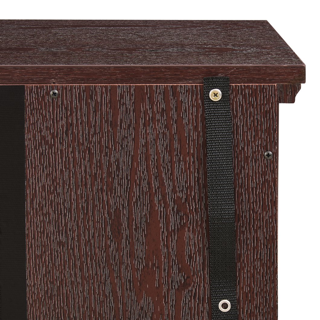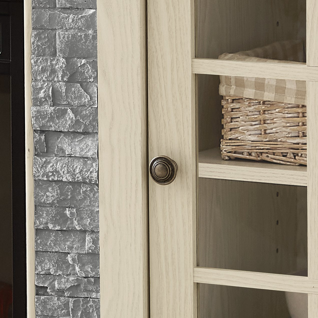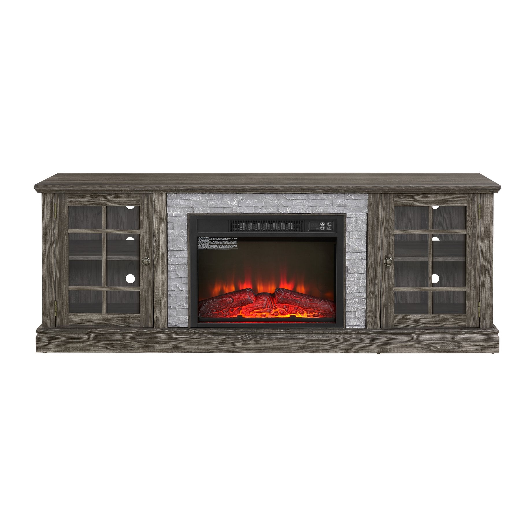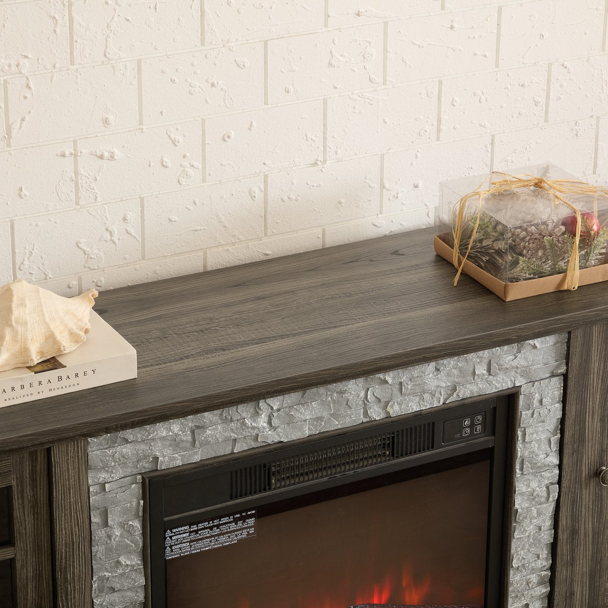 - Design Details: Faux stacked resin stone surround and wood-veneer mantle for a realistic fireplace look; vintage-style metal handles for durable, classic styling