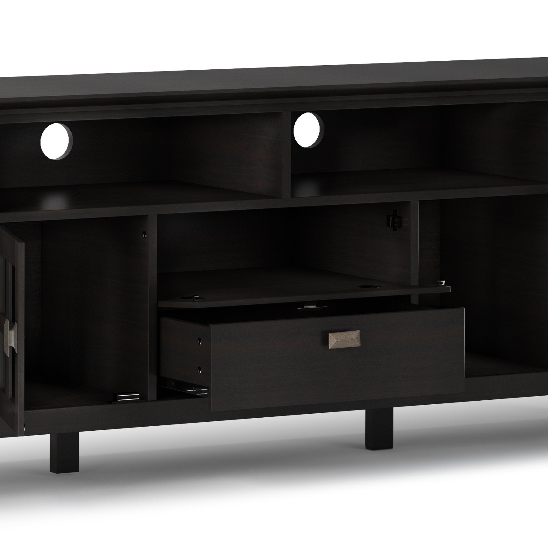 - TV Capacity & Cable Management: Extra-wide top surface supports TVs up to 80" and includes cut-outs for cords and component ventilation for easy installation