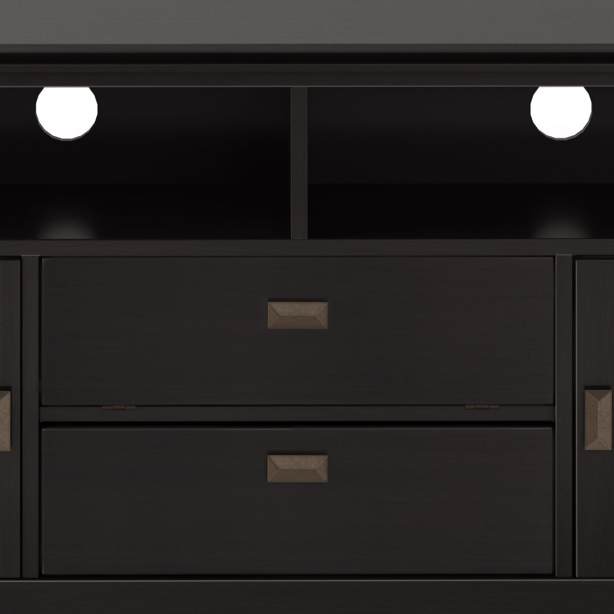 Elevate your living room with the Artisan TV media stand — a handcrafted, transitional piece that blends rustic warmth with modern functionality. Built from solid wood and finished in a rich Hickory Brown, this extra-wide stand accommodates large TVs while offering smart storage and cord management to keep entertainment areas tidy and stylish.