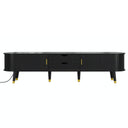 - Ample Storage Space: With a spacious 74.8-inch wide tabletop, this TV stand easily fits up to 80-inch TVs and accommodates various items. Two drawers offer convenient access to small essentials, while adjustable shelves in both side compartments can be adjusted or removed to store larger items.