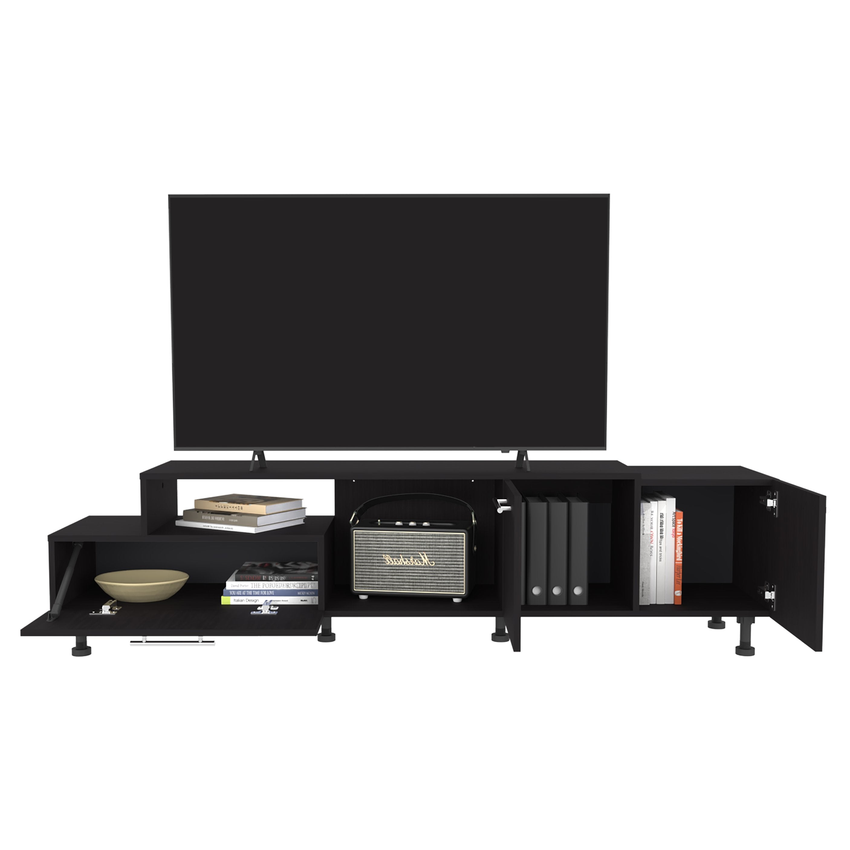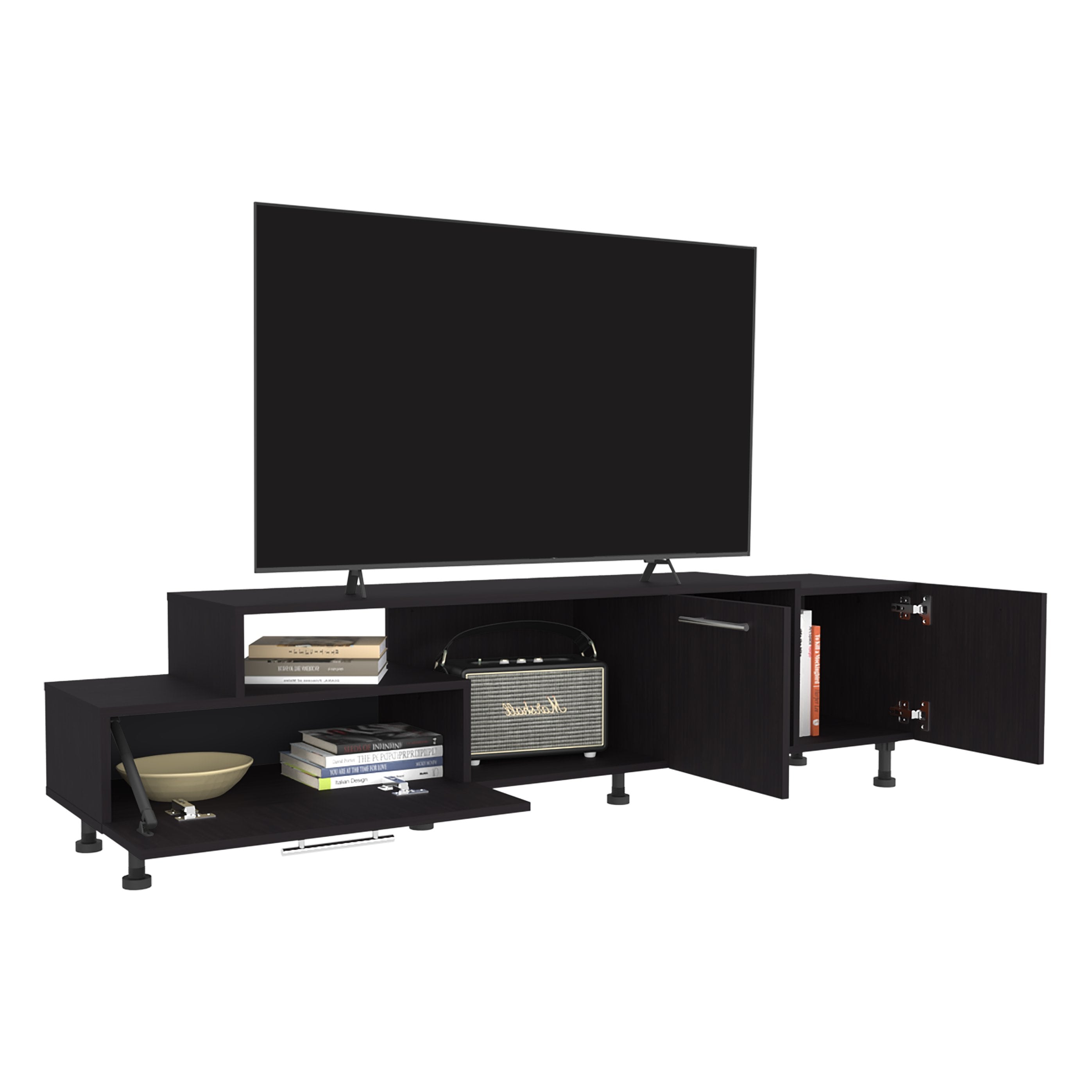 - Fits up to 75" TVs: Wide, stable top surface designed to support large flat-screen televisions securely.