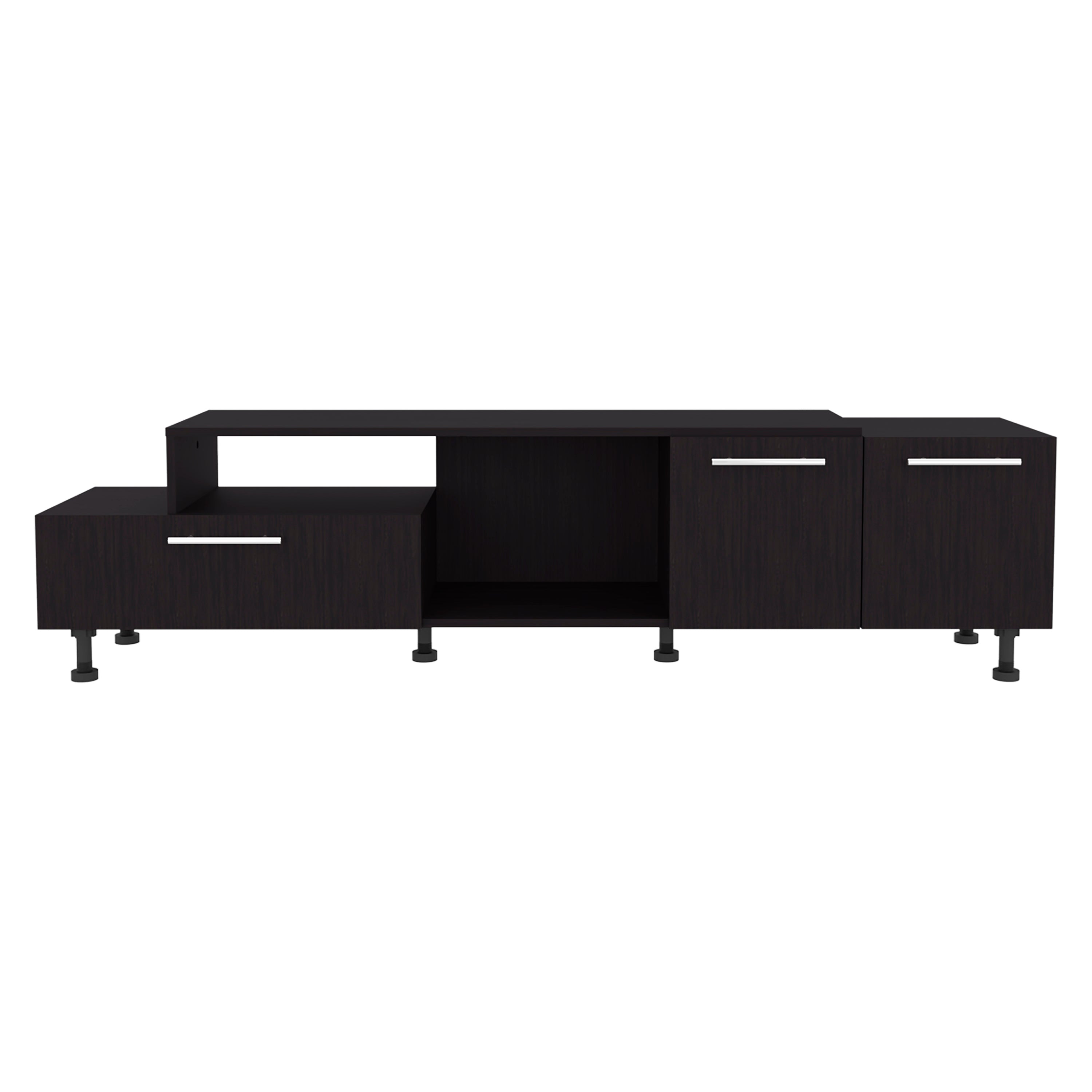 Elevate your living room with this modern, two-tier TV stand that combines clean lines with practical storage. Its streamlined black engineered wood finish complements contemporary decor while offering versatile spaces for AV components, media, and décor—keeping everything organized and easy to access.