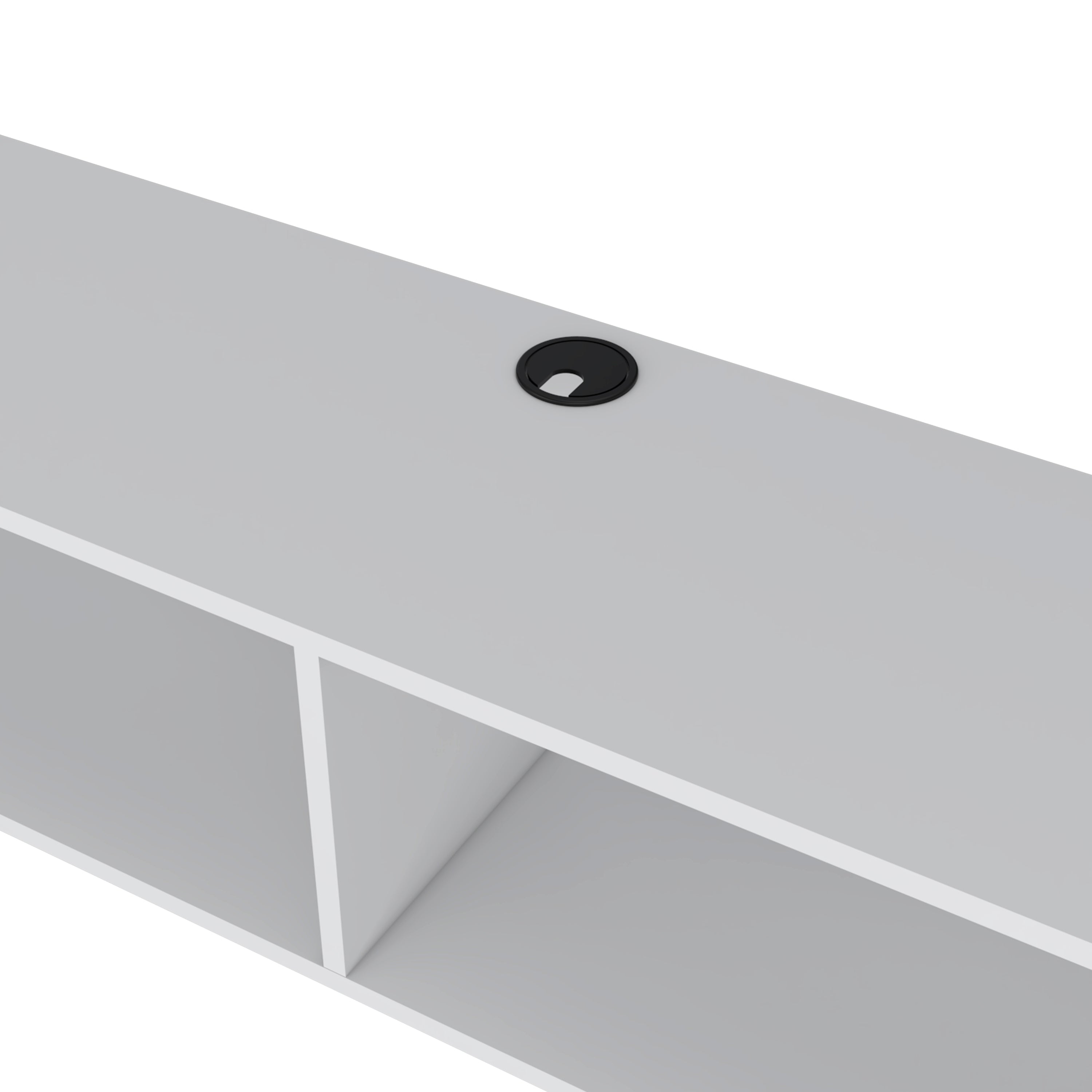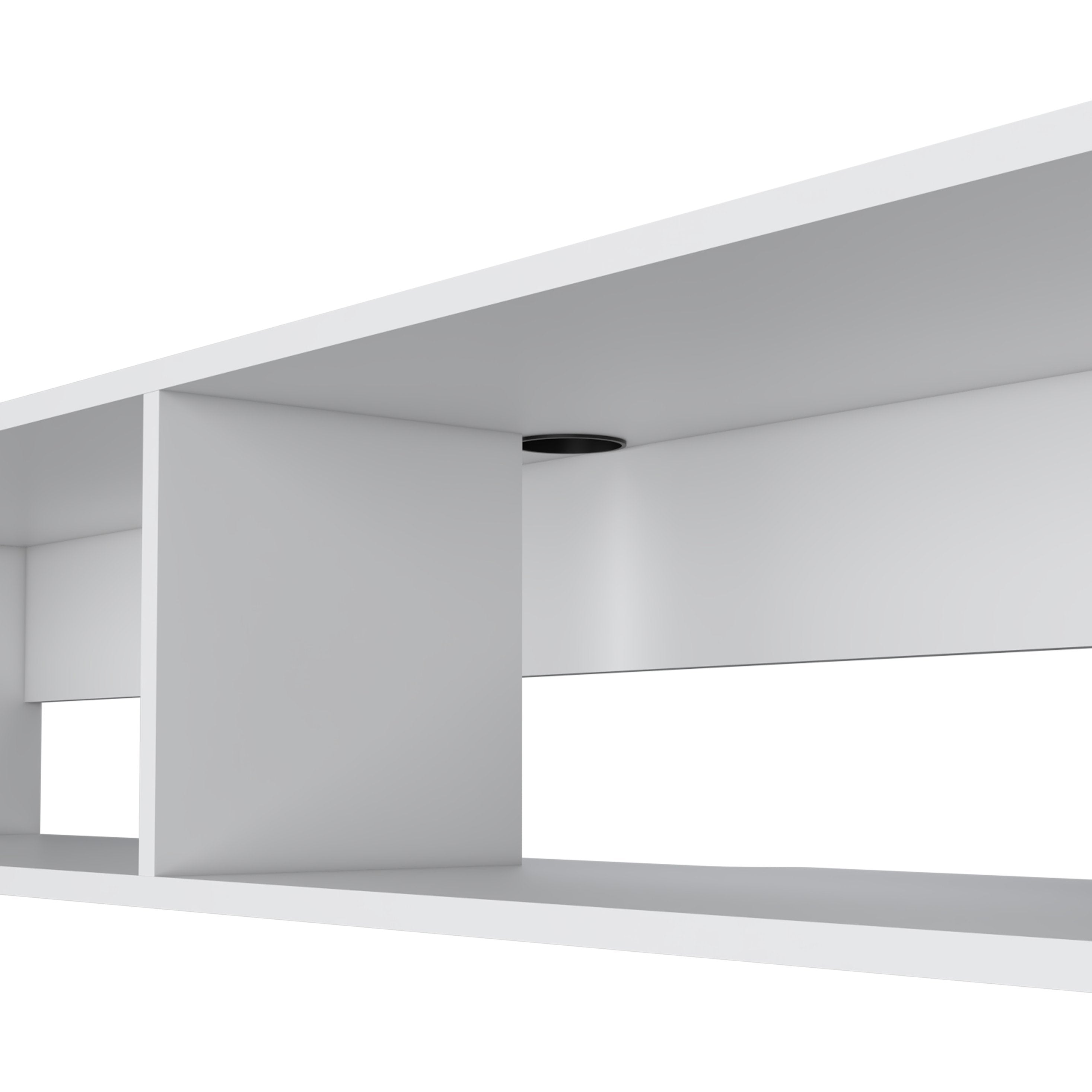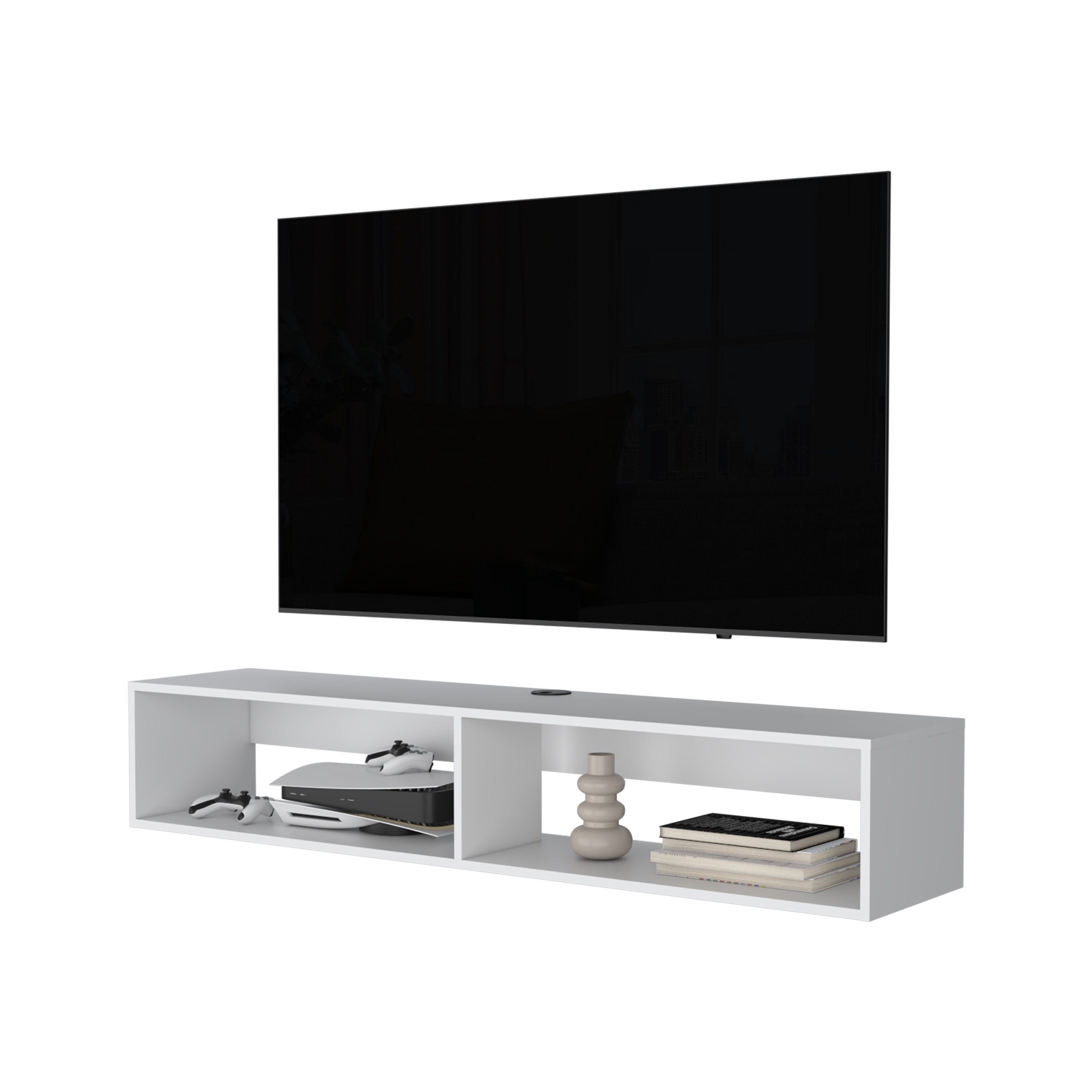 Bring a clean, contemporary focal point to your living space with this wall-mounted floating media rack. Crafted from durable melamine over particle board, it combines minimalist style with practical storage to keep media components and accessories organized while saving floor space. Its low-profile design positions your TV and devices at an ideal viewing height and complements modern interiors.