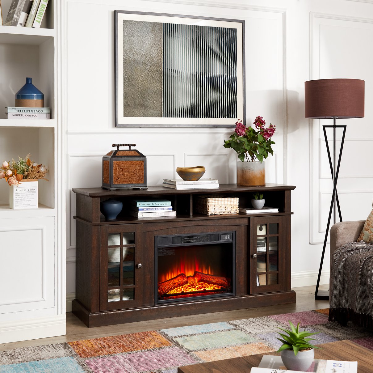 - [Your Home Entertainment Center] With a width of 58.25'', this fireplace provides perfect space for most TVs up to 65'', and ample amount of storage space for all your consoles, DVD players, and any other home entertainment gadgets.