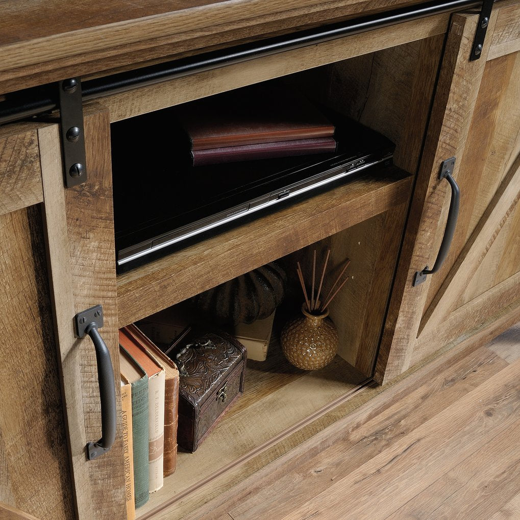 This elegant brown-finish credenza blends classic style with modern functionality to anchor your living room, dining area, or entertainment space. Designed to support TVs up to 70", it offers versatile storage options, cable organization, and a warm wood-tone finish that complements a range of interiors.