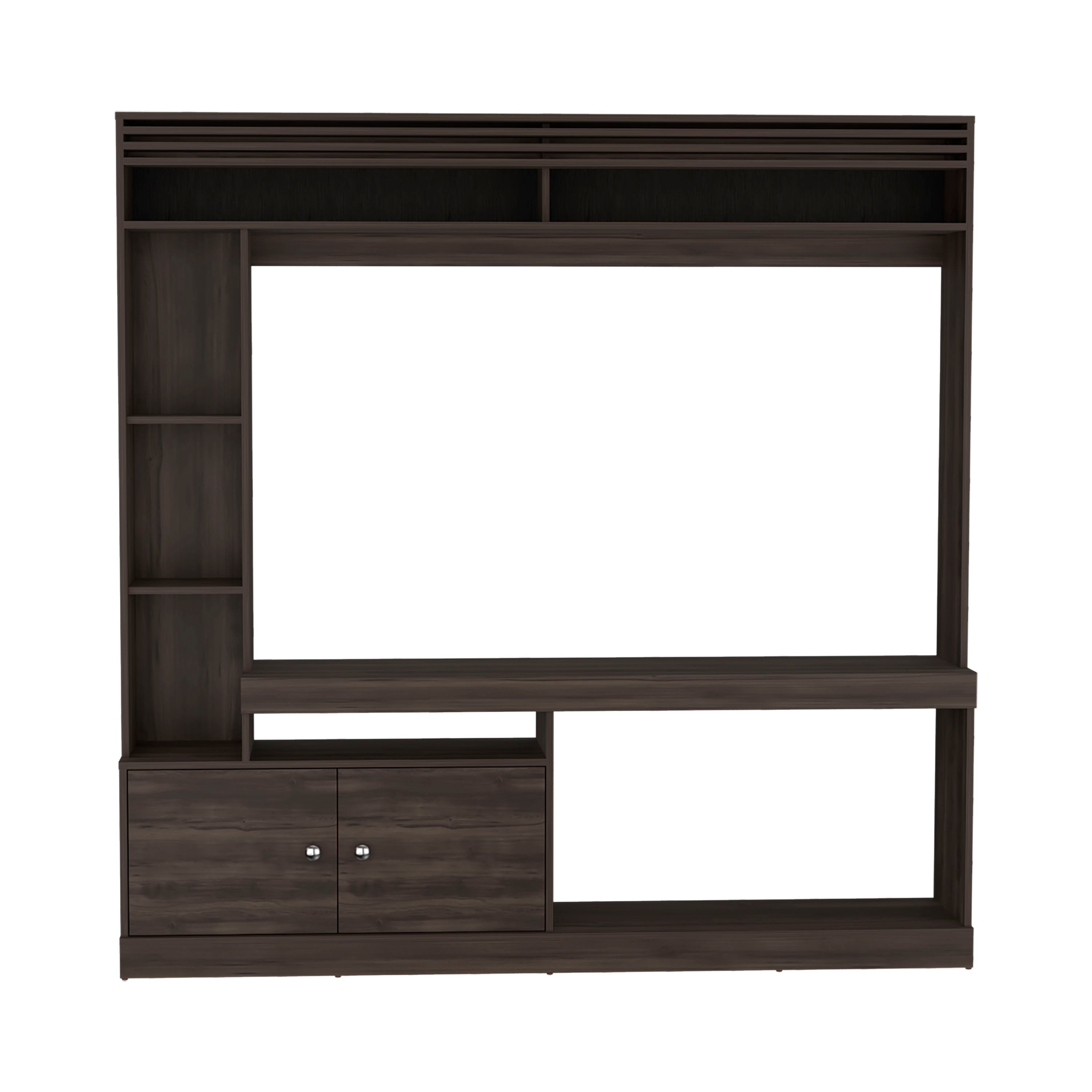 Bring style and organization to your living room or media room with this versatile freestanding entertainment center. Designed to showcase a large flat-screen while offering abundant storage and display space, its dark walnut finish and clean lines suit both contemporary and traditional interiors. Ideal for TV viewing, book collections, and decorative displays, this unit combines function with a polished look.