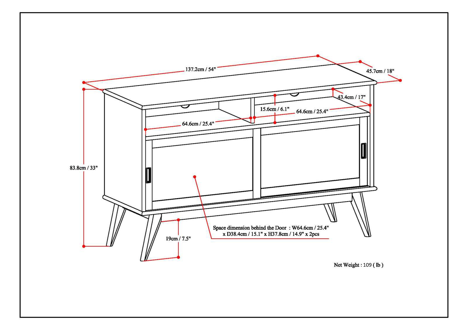 - Dimensions: 18" D x 54" W x 33" H (also listed as Product Dimensions: 57.87" L x 21.85" W x 9.65" H)