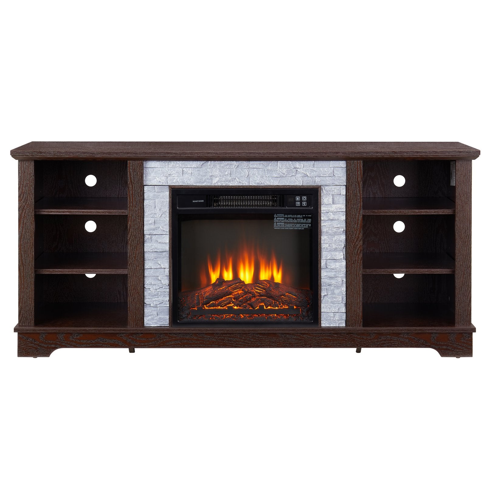 - Design & Finish: Cherry wood veneer with faux stacked resin stone surround and mantle for a realistic wood-burning fireplace look.