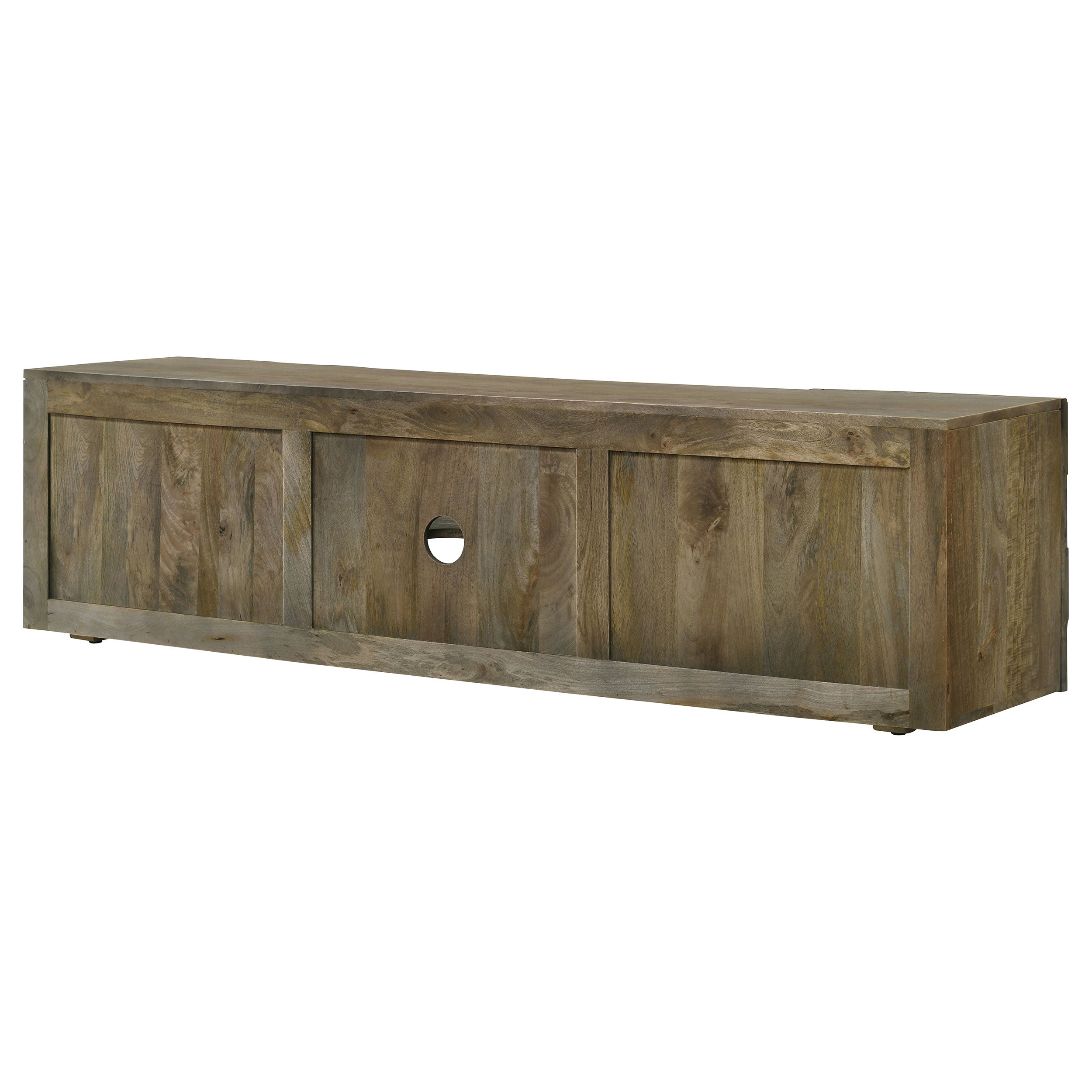 Bring rustic charm and practical storage to your living room with this farmhouse-style TV stand finished in a warm mango brown. Thoughtfully designed to balance aesthetics and functionality, it provides ample surface for large TVs, concealed storage behind two doors, and open shelving for media devices or decor — an ideal centerpiece for cozy, organized entertainment spaces.