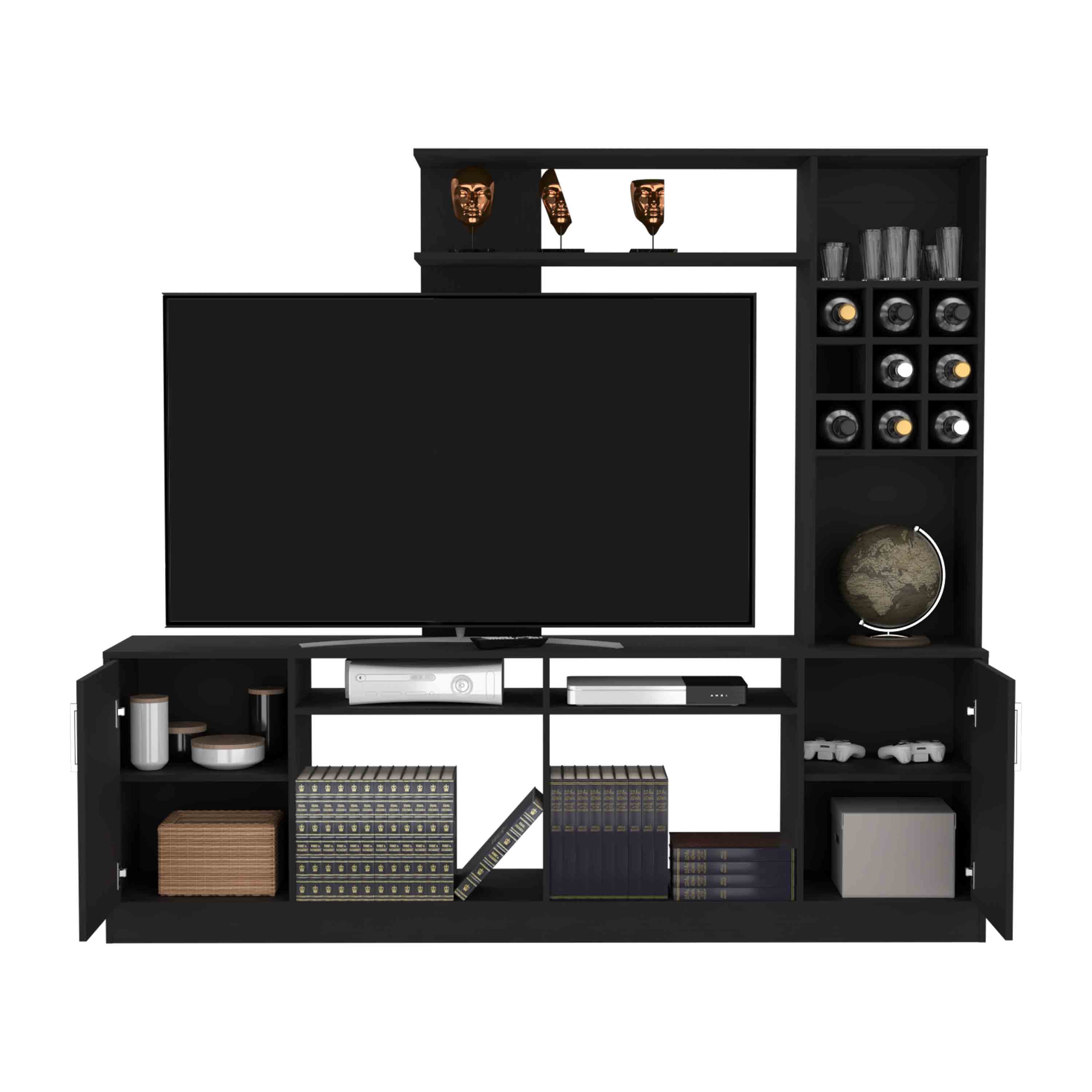 - Storage capacity: Double-door cabinet plus six external shelves provide versatile storage for media players, gaming consoles, books, and decorative items