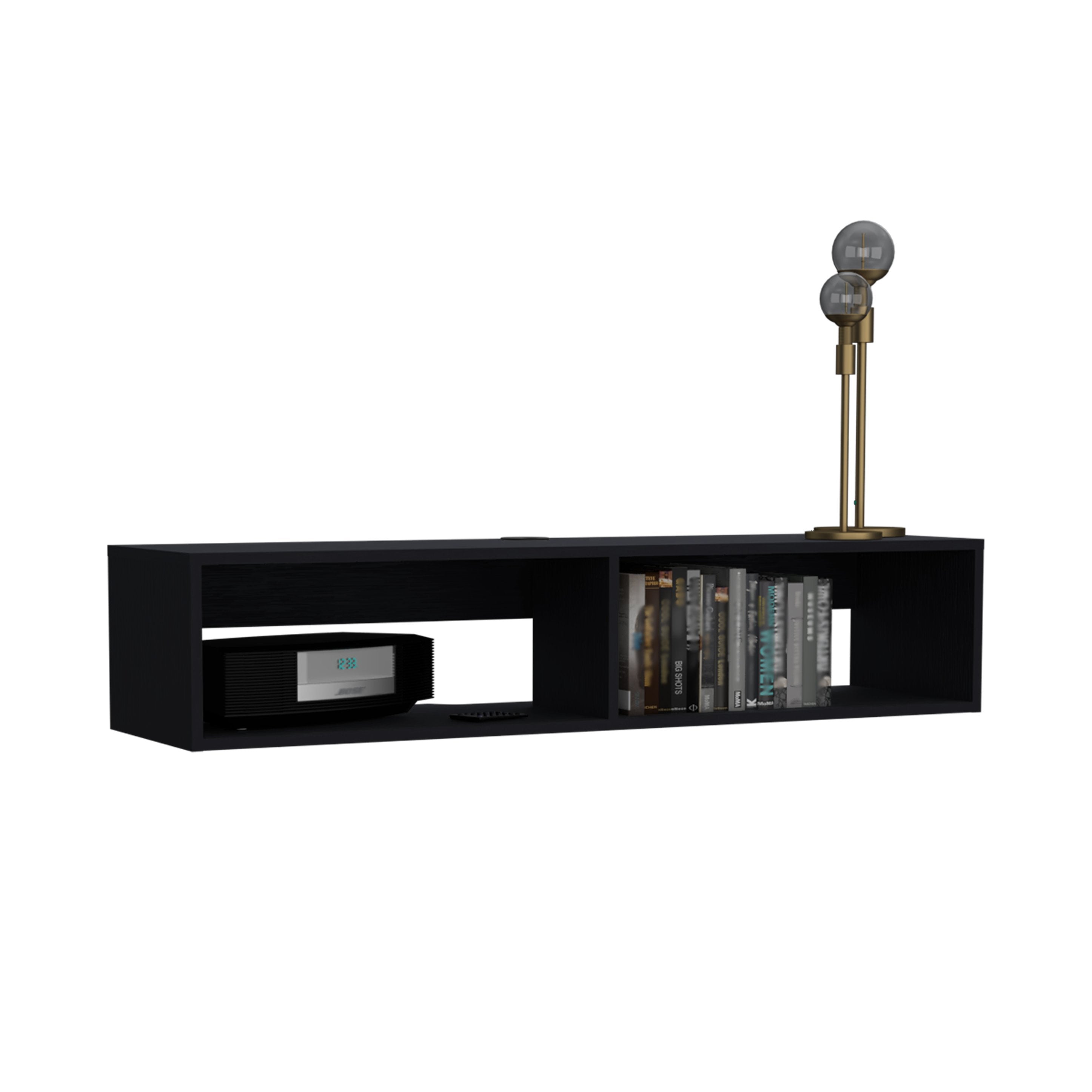 - Open Shelf Storage: Two large shelves, each 22.9" W x 8.6" H, for easy access to devices and organized display