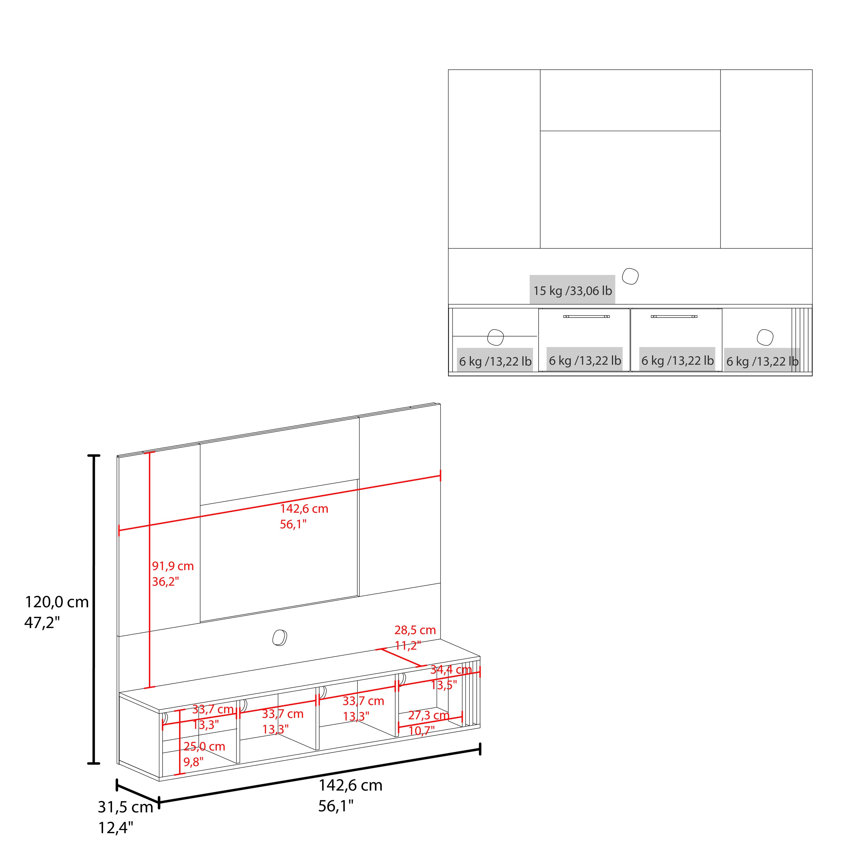 - Dimensions: 47,2" (H) x 56,1" (W) x 12,4" (D)."