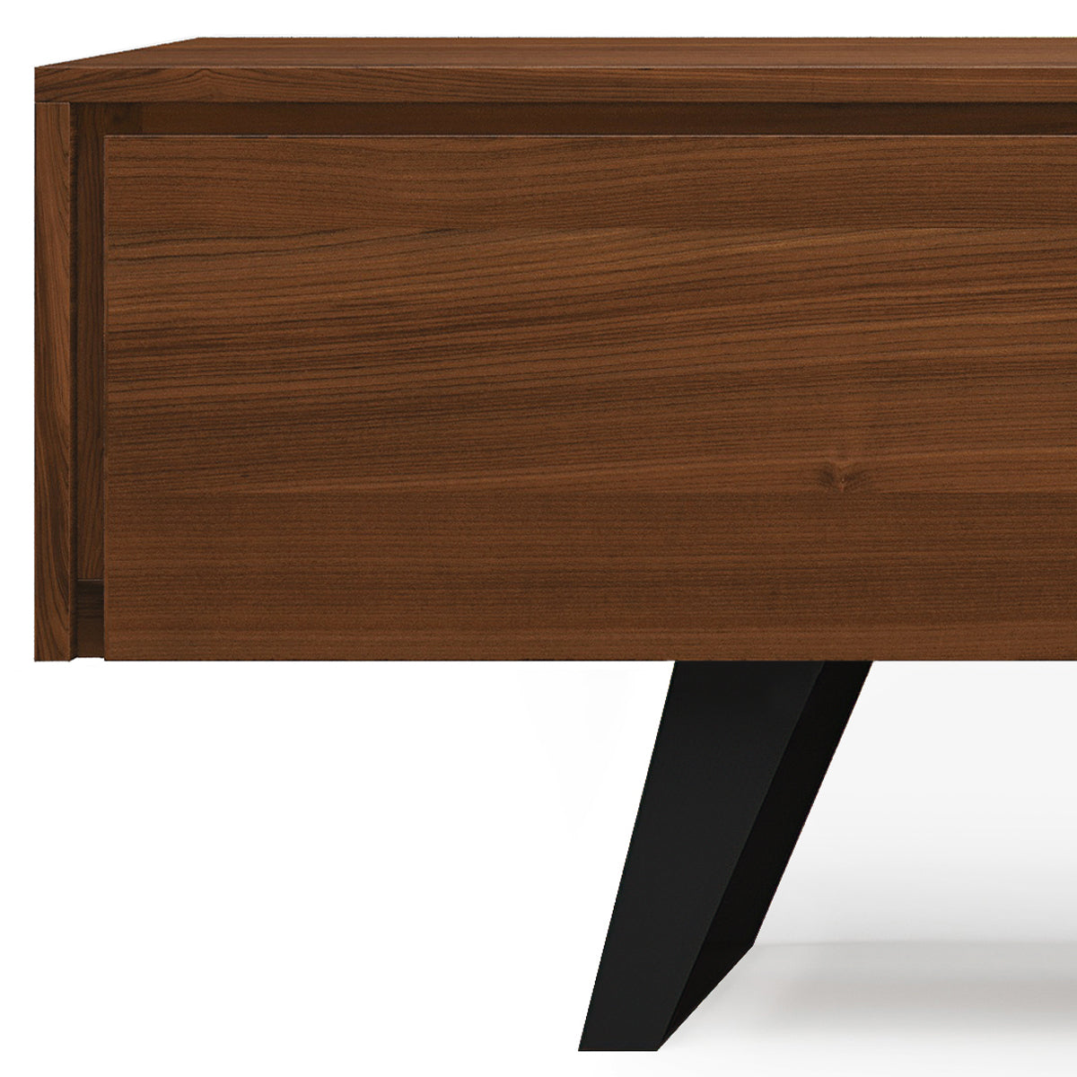 Elevate your living space with the Lowry TV media stand — a refined blend of mid-century modern design and durable craftsmanship. Hand-finished in rich walnut veneer over solid wood, this versatile media console offers organized storage, sleek concealed doors, and sturdy metal legs to support entertainment systems while maintaining a clean, contemporary silhouette.