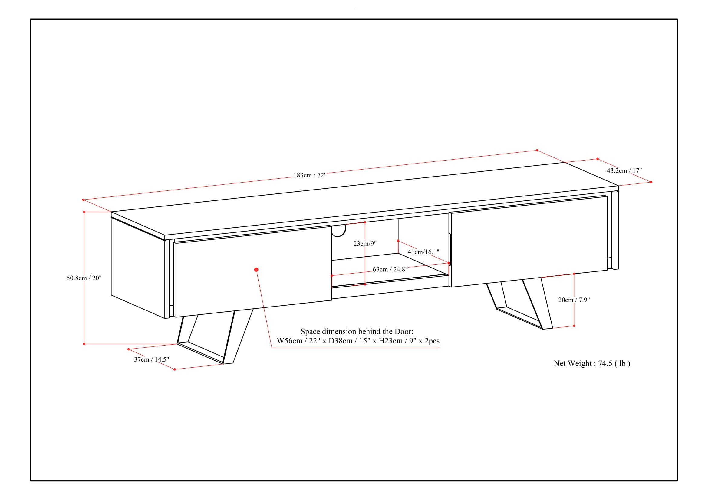 - Storage & Functionality: Central open compartment with cord-management cutouts ideal for A/V components; two concealed doors provide additional storage and a clutter-free look.