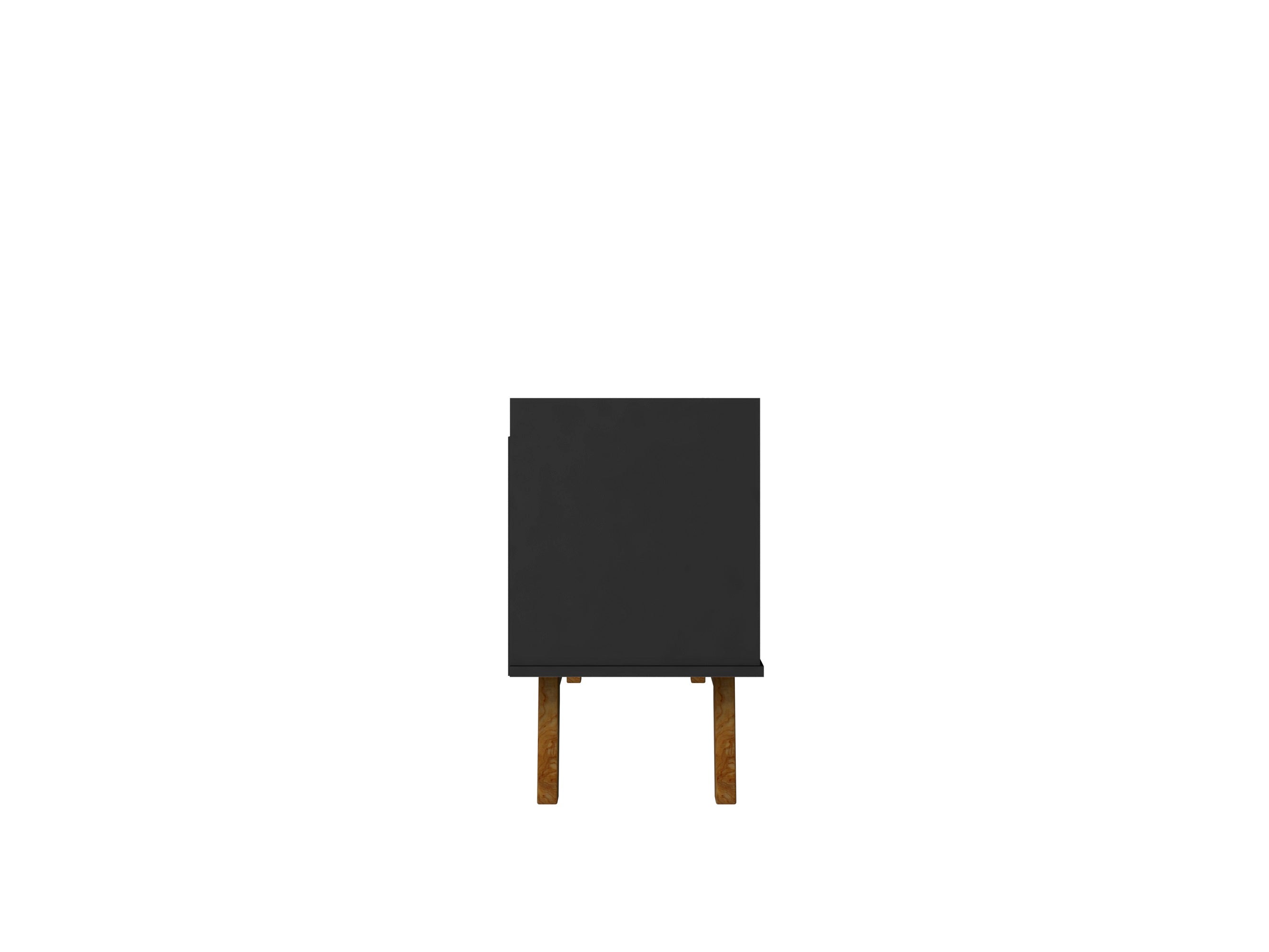 Give your living room a sleek, modern upgrade with this black TV stand designed for both style and function. Built from high-quality MDF with solid pine legs, it offers sturdy support, refined aesthetics, and practical storage to keep media components and cables organized—ideal for TVs up to 55".