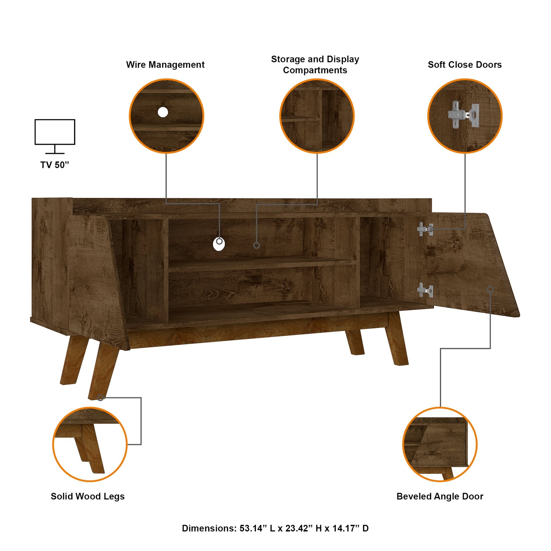 - Dimensions (assembled): 53.14" L x 23.42" H x 14.17" D (recommended for a 55" TV)