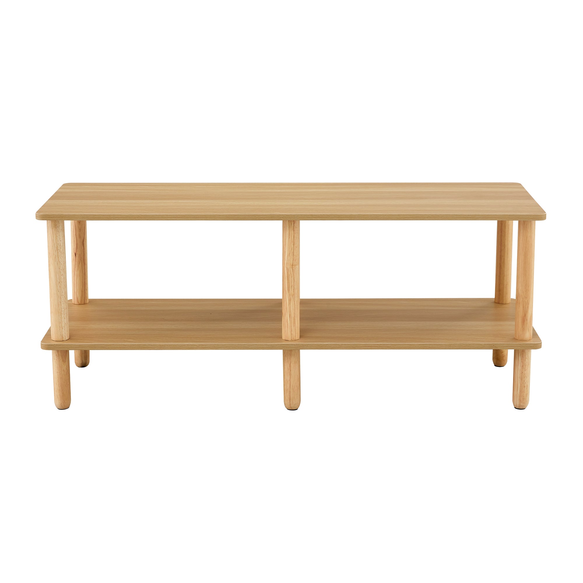 Bring modern simplicity and practical storage to your living room with this elegant two-tier TV stand and center table. Crafted from solid wood and MDF with rounded rubberwood legs, it delivers a durable surface, clean lines, and an understated industrial look that complements both contemporary and classic interiors. The open lower shelf provides convenient storage for media components, books, or decor while felt pads on the legs protect your floors.