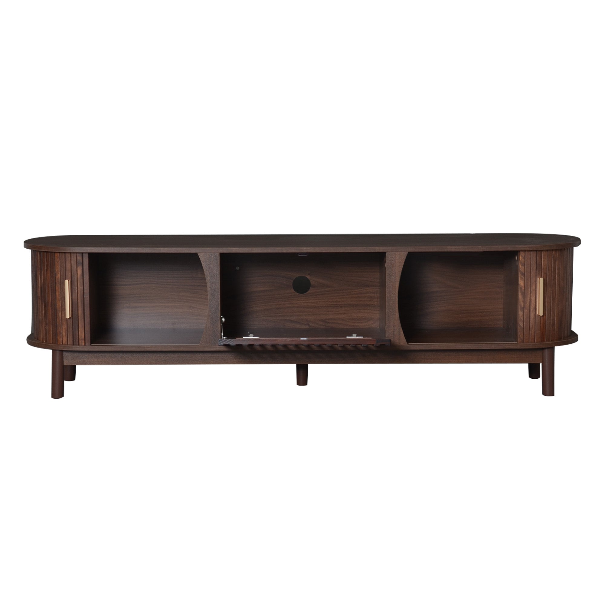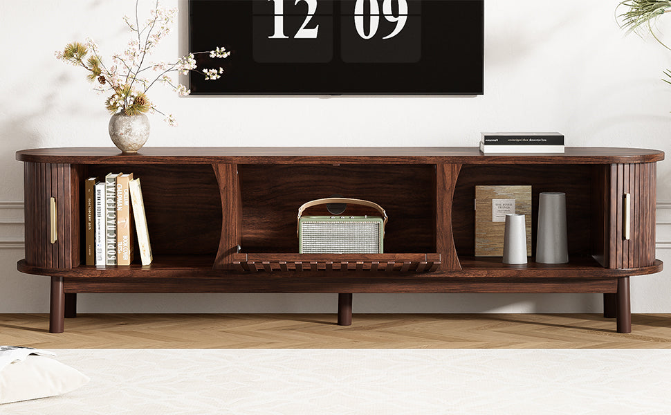 - [Smart & Functional Storage Solutions] Combining style with practicality, this TV stand includes sliding doors for space-saving access, a convenient drop-down door for quick storage, and well-organized compartments to keep media devices, books, and decor neatly arranged. The thoughtful design maximizes usability without compromising on elegance.