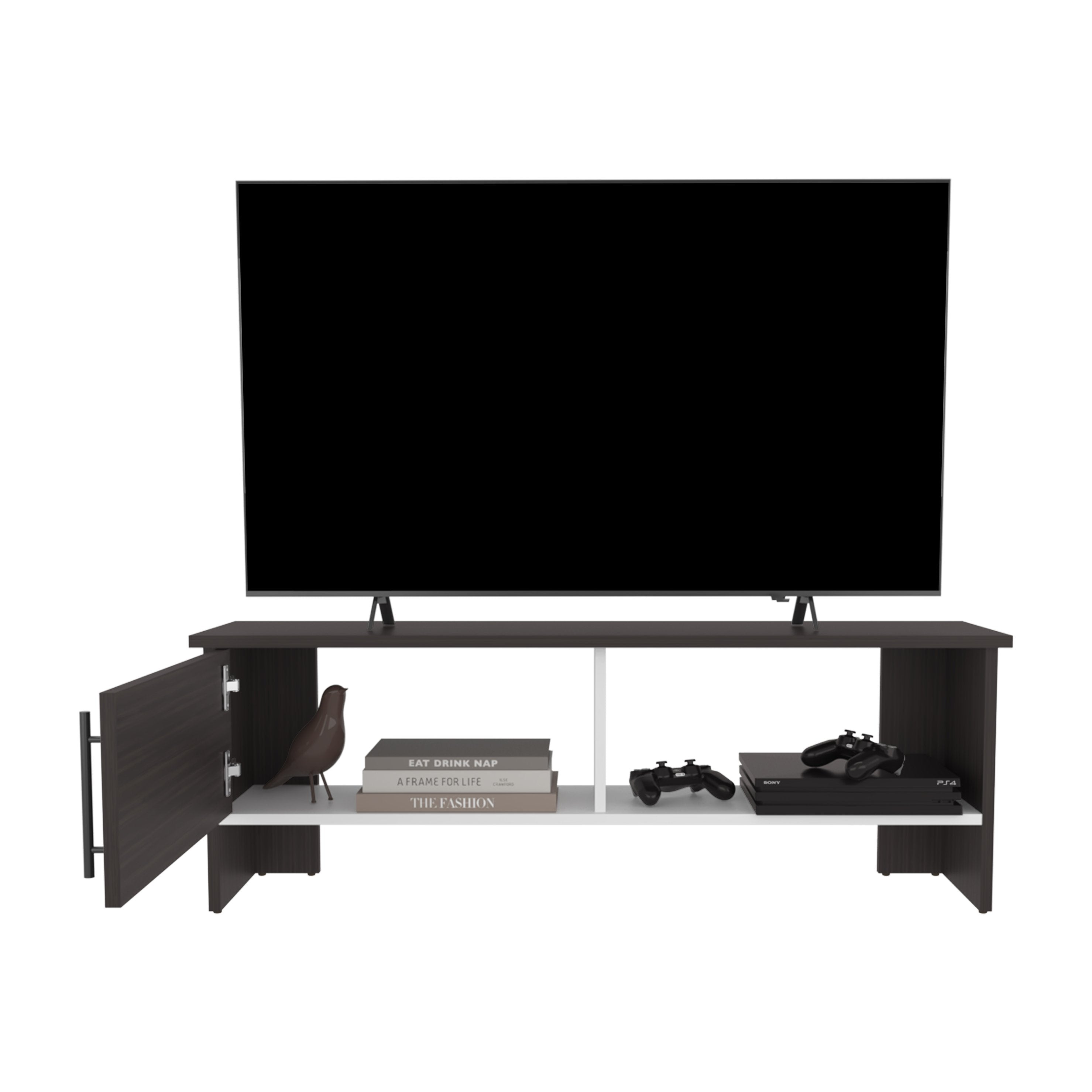 - Storage layout: One closed-door cabinet for concealed storage plus an open shelf for media players, game consoles, or decorative items