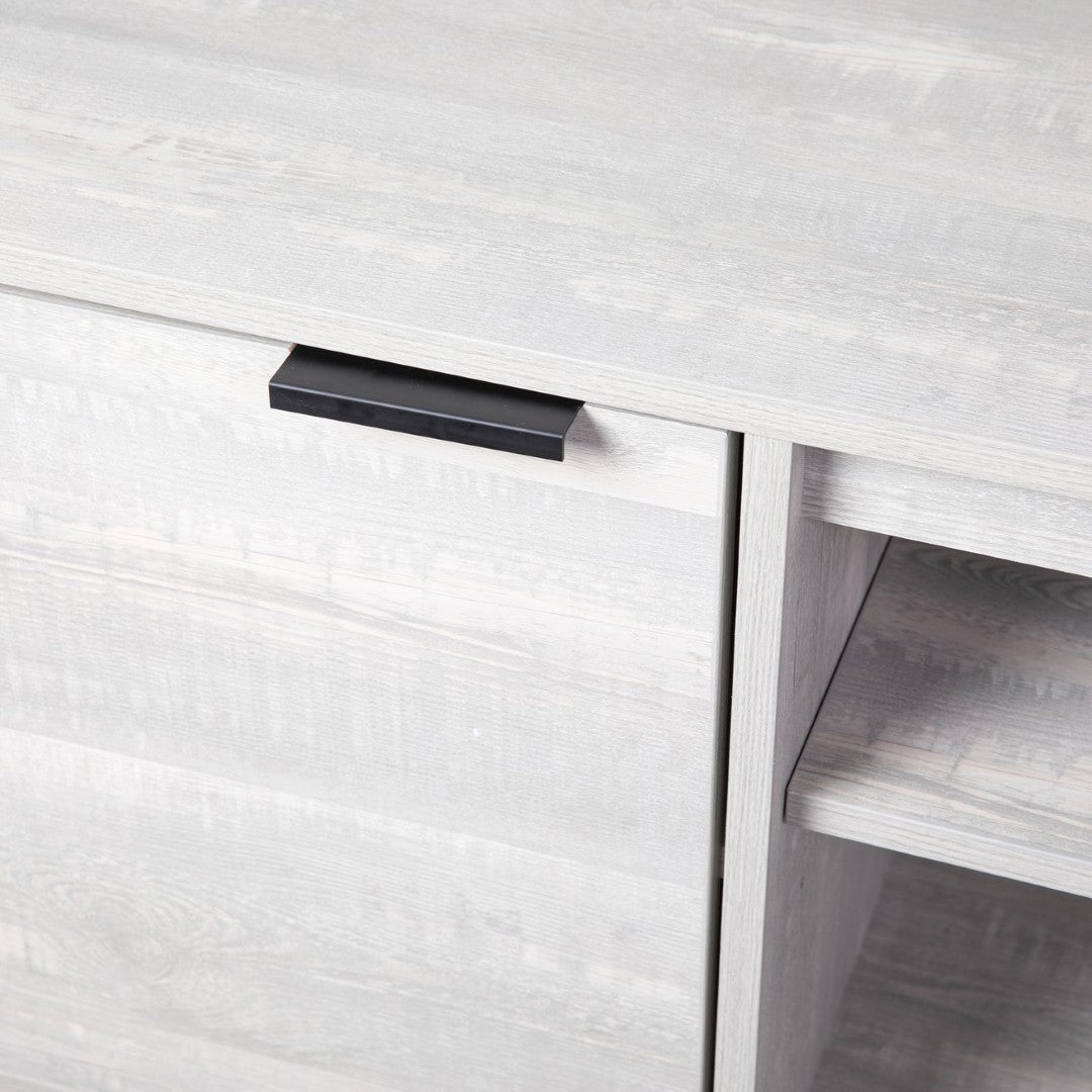 Upgrade your living room with a versatile mid-century modern TV stand that combines clean lines, durable construction, and thoughtful storage for a clutter-free entertainment area. Designed to accommodate today’s electronics and display your favorite décor, this console balances style and function with adjustable shelving, wire management, and protective steel legs — all in a sleek gray wood grain finish.