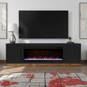 Bring modern farmhouse charm and dependable functionality to your living room with this two-tone fireplace TV stand. Designed to accommodate large screens while providing hidden storage and an efficient electric fireplace, this console pairs clean lines and quality hardwood construction with practical features for media management and cozy ambiance.