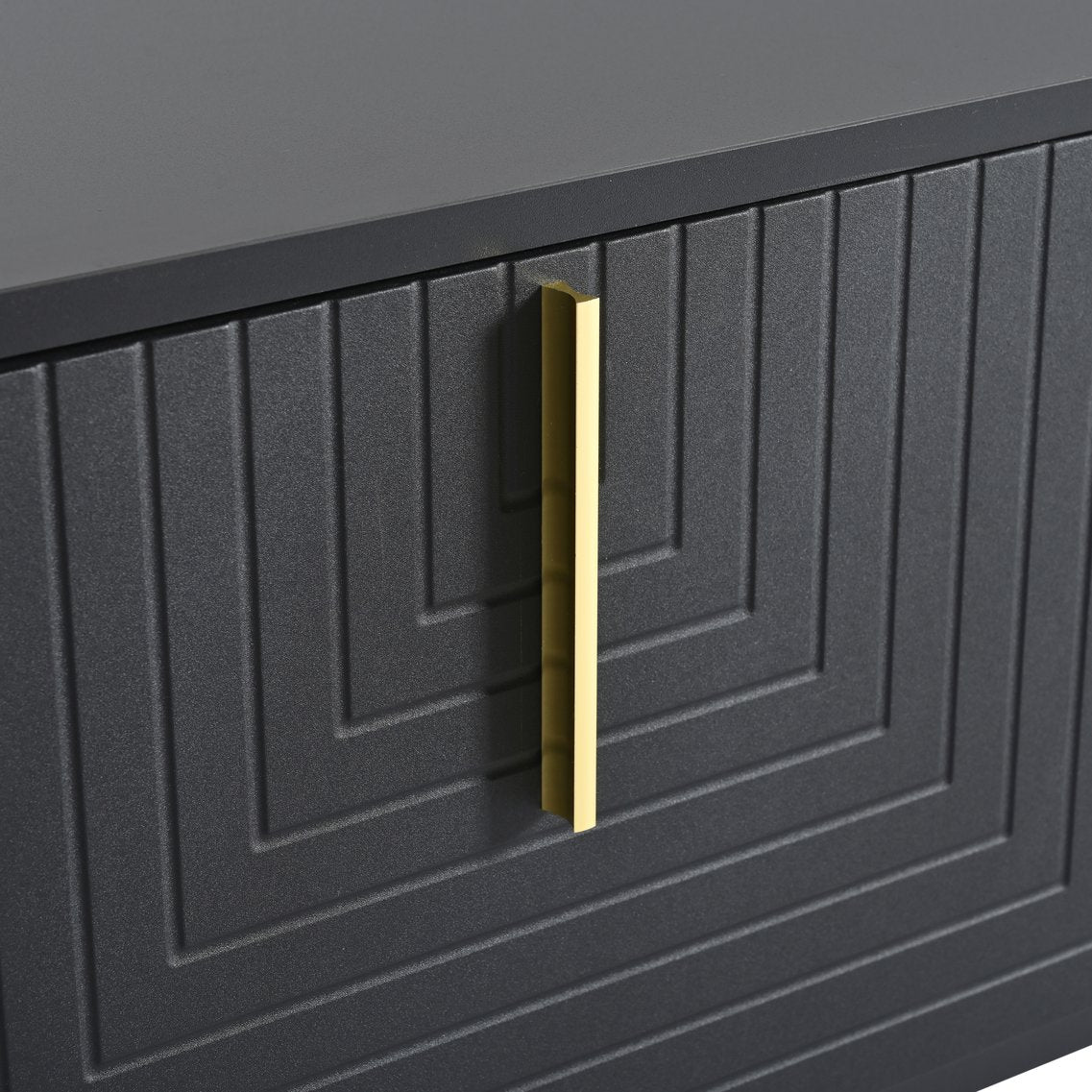 - Stylish accents: Four cabinet doors with geometric line detailing and gold handles/legs for an upscale, contemporary look.