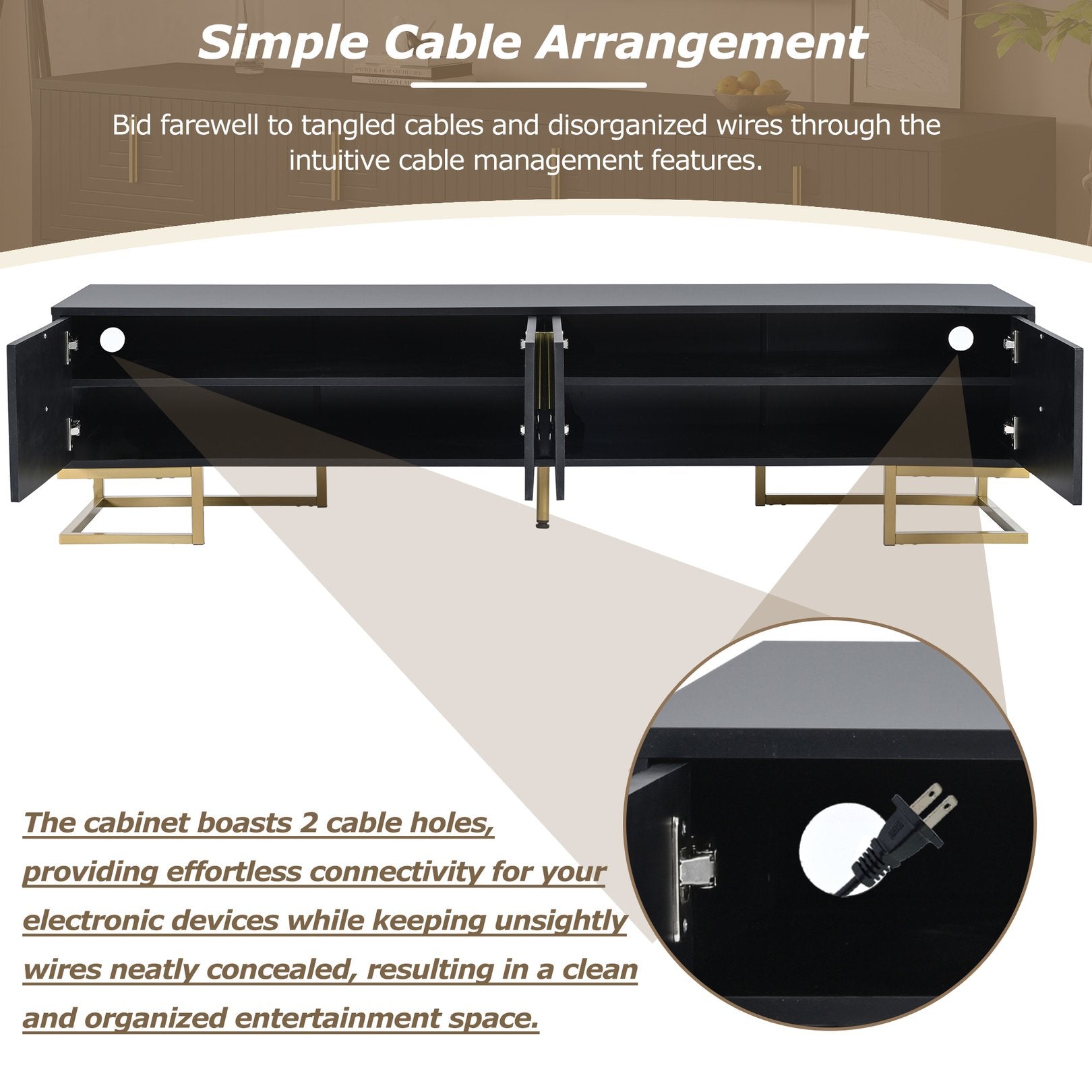 - Built to Last: This TV cabinet is built with high-quality MDF boards, ensuring strength and stability for long-lasting use. The sleek metal base adds a modern touch while providing solid support. Equipped with premium hinges and hardware, this piece guarantees smooth functionality and durability.