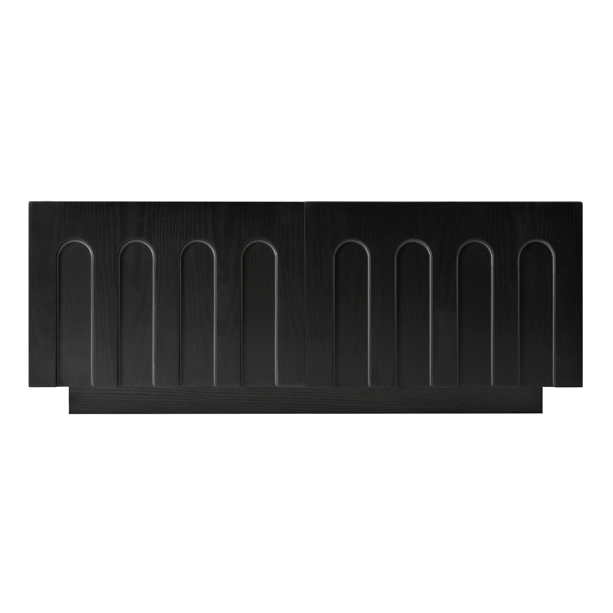 Transform your living space with this versatile, modern TV stand and coffee table set — a dual-purpose solution that blends elegant arched detailing with practical storage. Use the pieces separately as a chic coffee table and side unit, or combine them into a widescreen media console that supports TVs up to 80". Clean lines, a sleek black veneer, and soft-close metal drawers deliver a refined look and everyday convenience for living rooms, bedrooms, or entertainment areas.