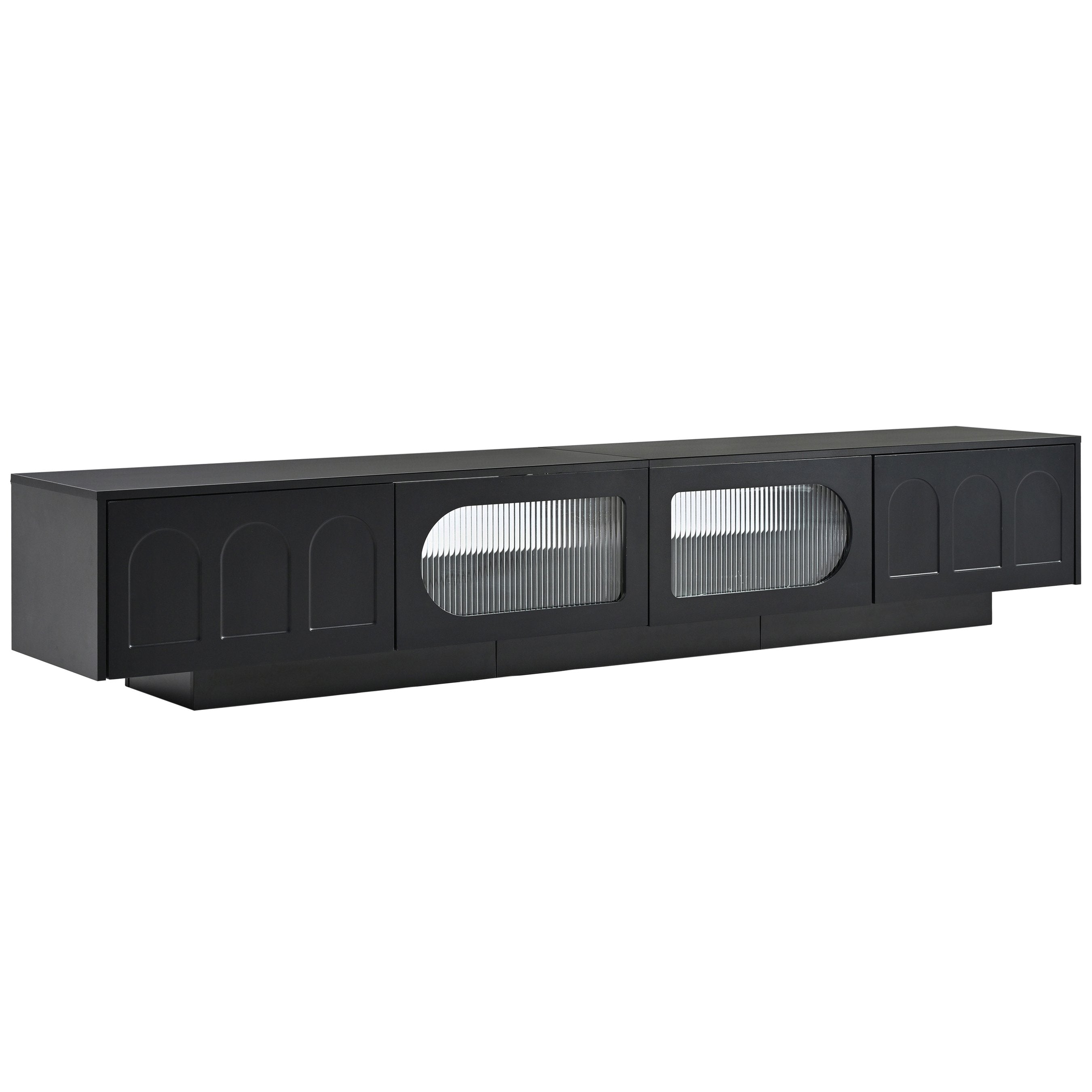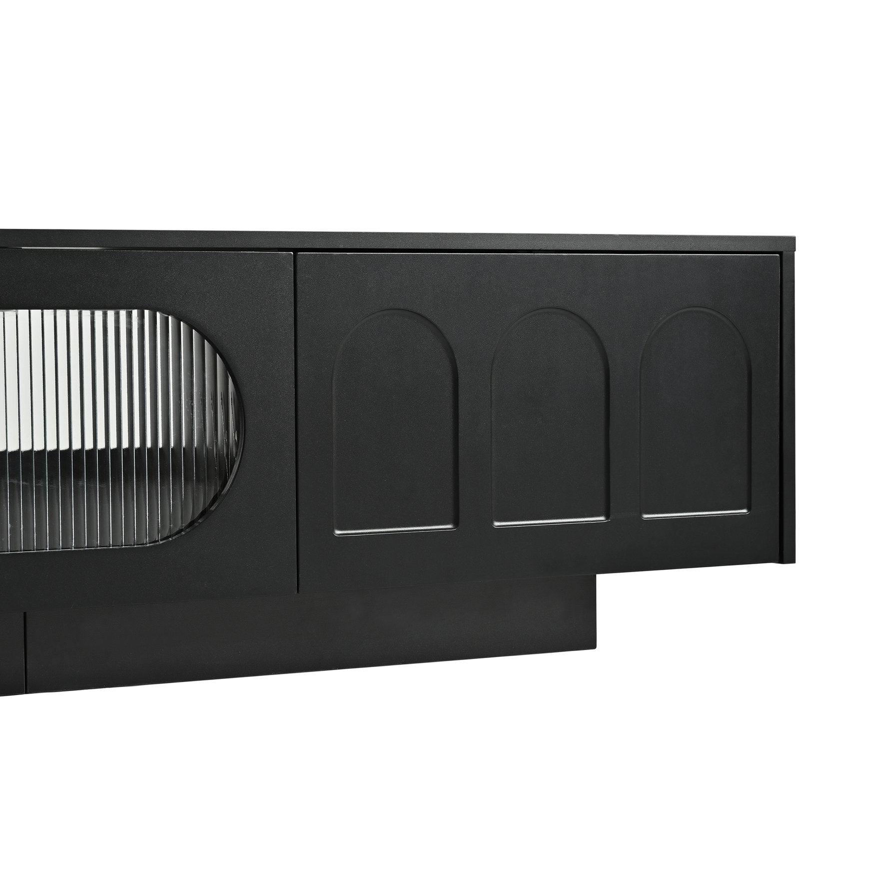 Bring modern sophistication and smart lighting to your living room with this on-trend media console. Designed for large TVs and everyday living, it combines fluted tempered glass arched doors, generous storage, and an app-controlled LED strip to create a stylish, functional centerpiece that keeps cables organized while showcasing your AV components.
