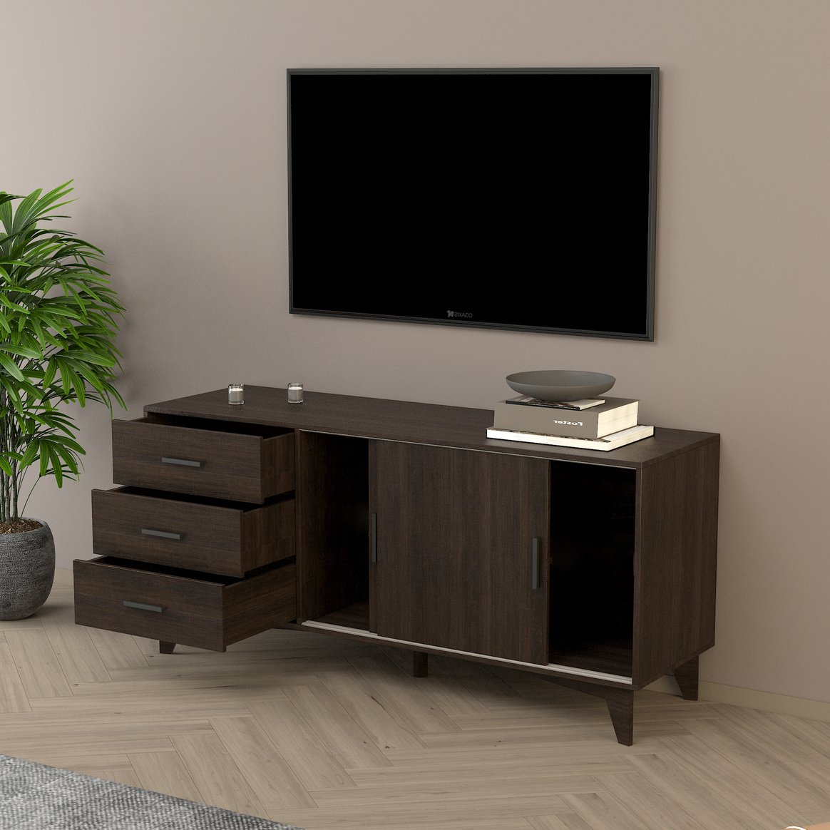 - Sliding Doors & Drawers: Smooth sliding doors plus drawers provide concealed storage for electronics, remotes, and media