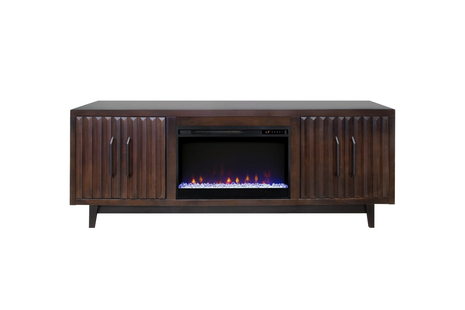 - Dimensions: 75" width; includes a 26" electric fireplace insert. (Designed to accommodate TVs up to 85")