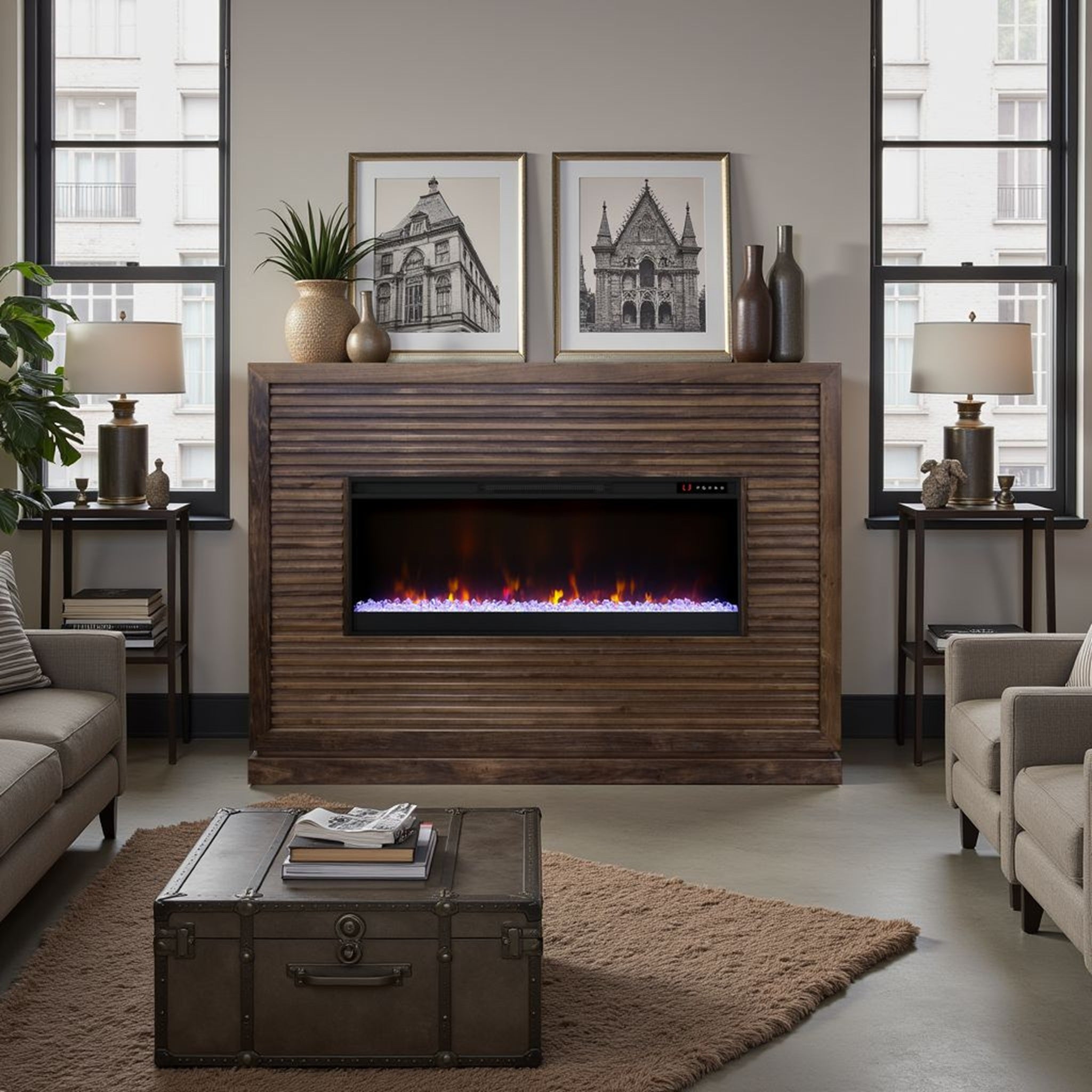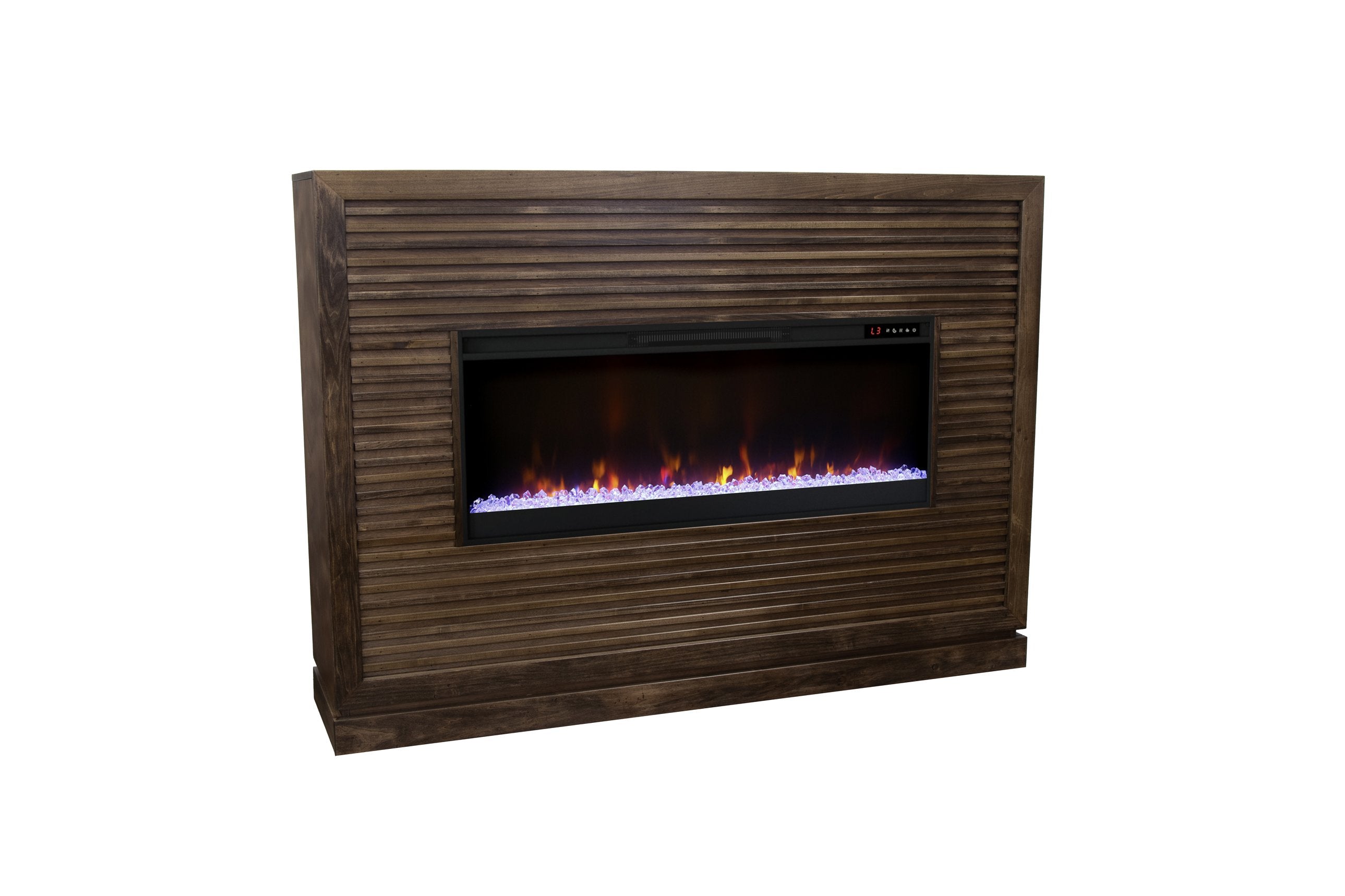 Elevate your living space with a refined centerpiece that combines classic craftsmanship and modern convenience. The Riviera mantel offers a clean, minimal profile with rich Bourbon finish and tasteful horizontal slat detailing — ideal for formal living rooms, family rooms, or media spaces that need a stylish focal point and supplemental heat.