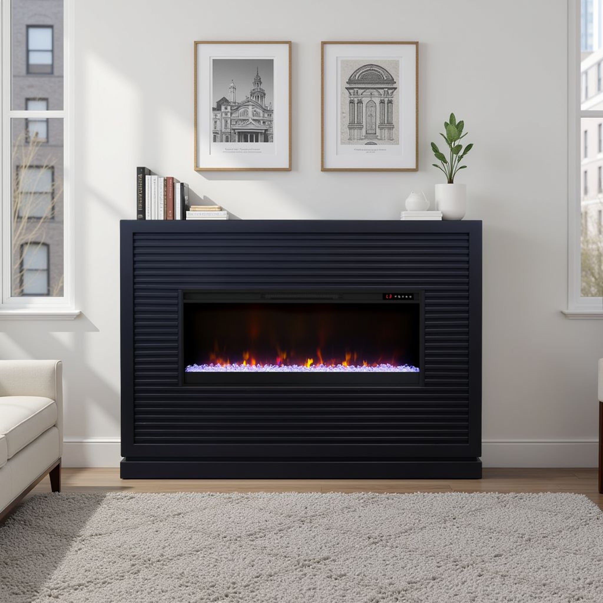 - Minimal Assembly required - use four (included) screws to secure fireplace insert to console
