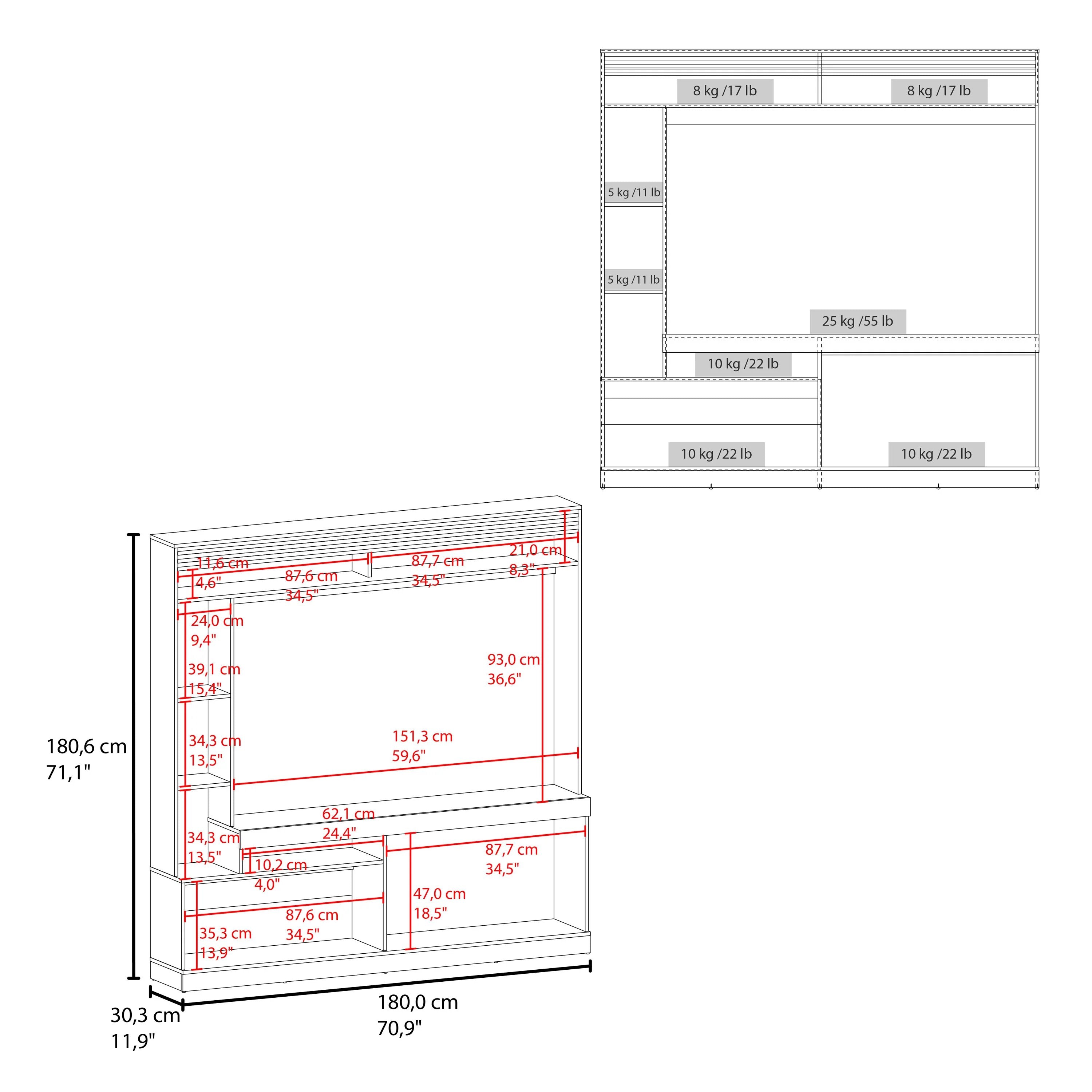 - Storage configuration: Six-shelf layout provides ample open shelving for display, books, and media devices; open storage allows for easy access and ventilation for electronics.