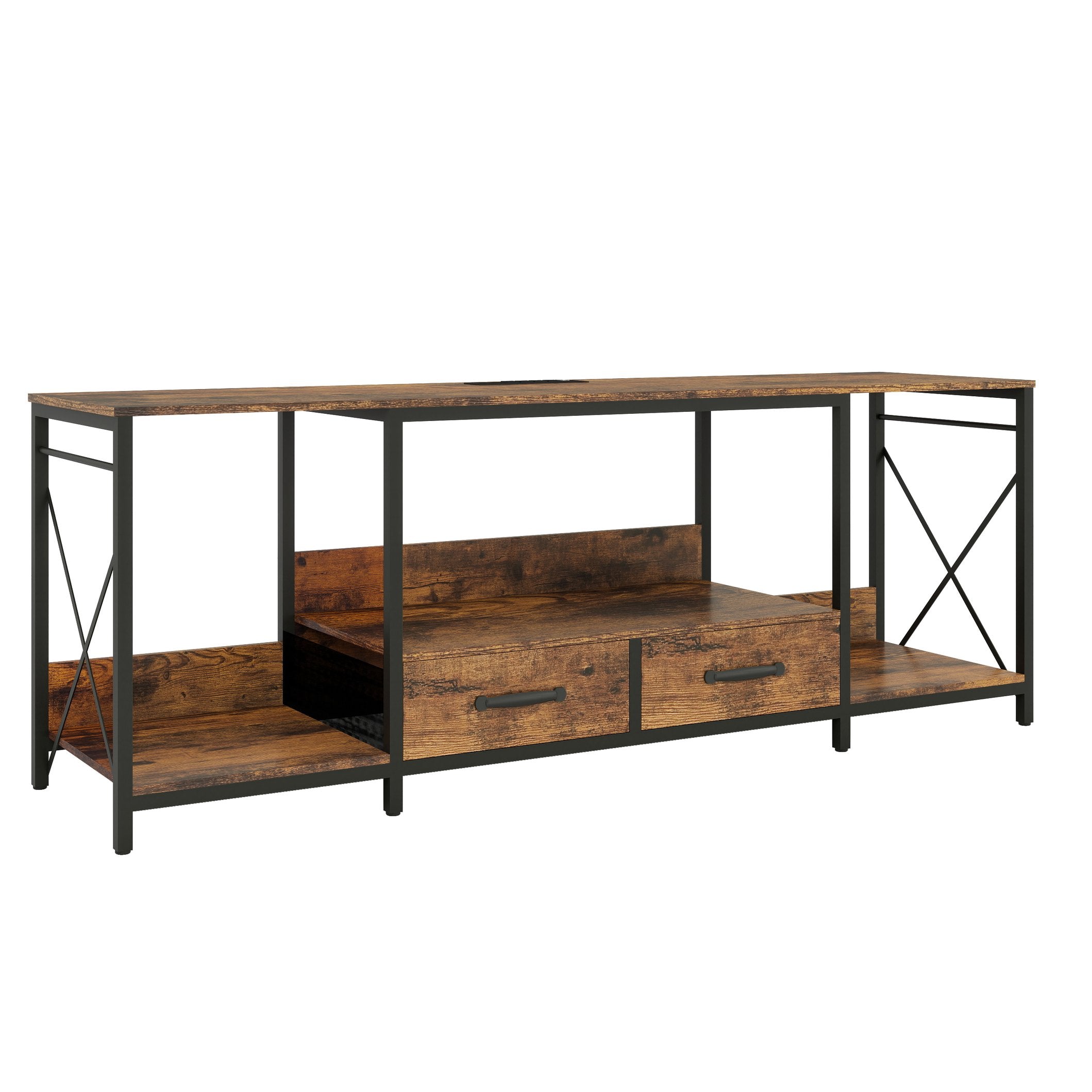 - Integrated power & charging: Built-in power strip with 4 AC outlets and 2 USB ports lets you plug in TVs, consoles, streaming devices, and charge phones without extra extension cords.