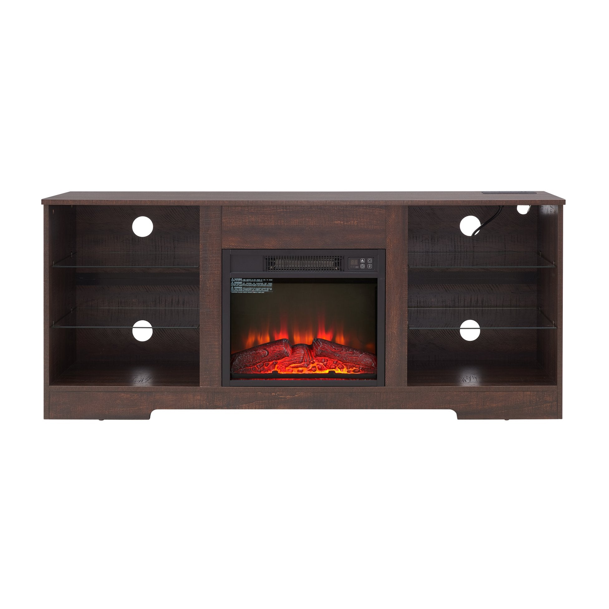 - Design Features: 2‑in‑1 design blends a 58" TV cabinet with an 18" electric fireplace module, highlighted by LED lighting and glass shelving for a contemporary focal point.