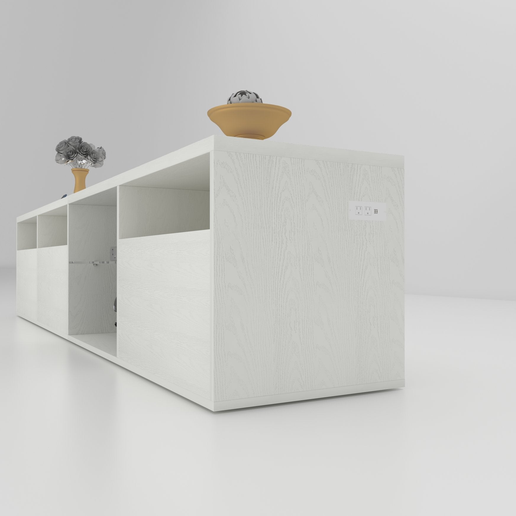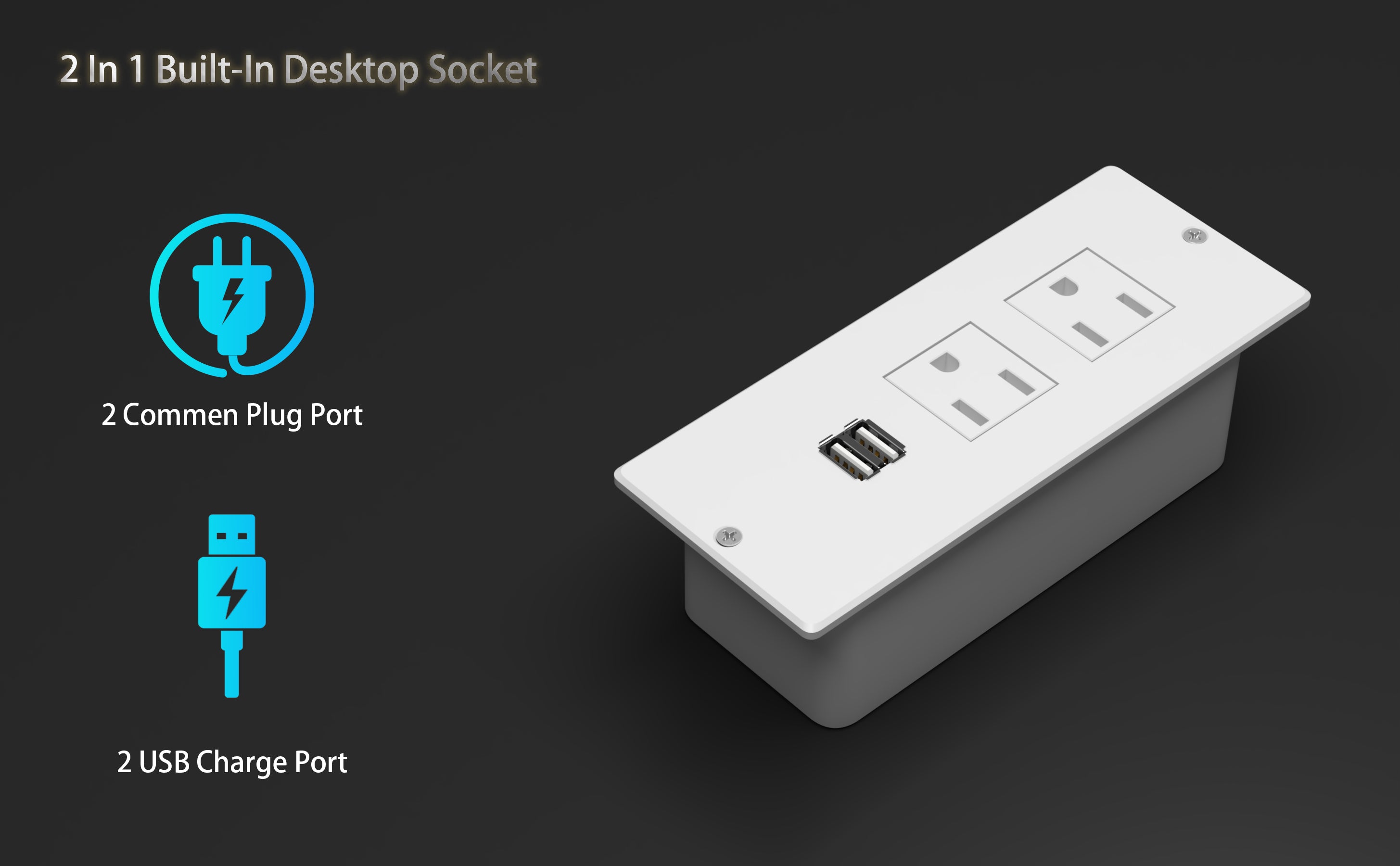 - Built-in Power and Charging: Includes 2 AC outlets and 2 USB ports to power devices and charge accessories without visible extension cords.