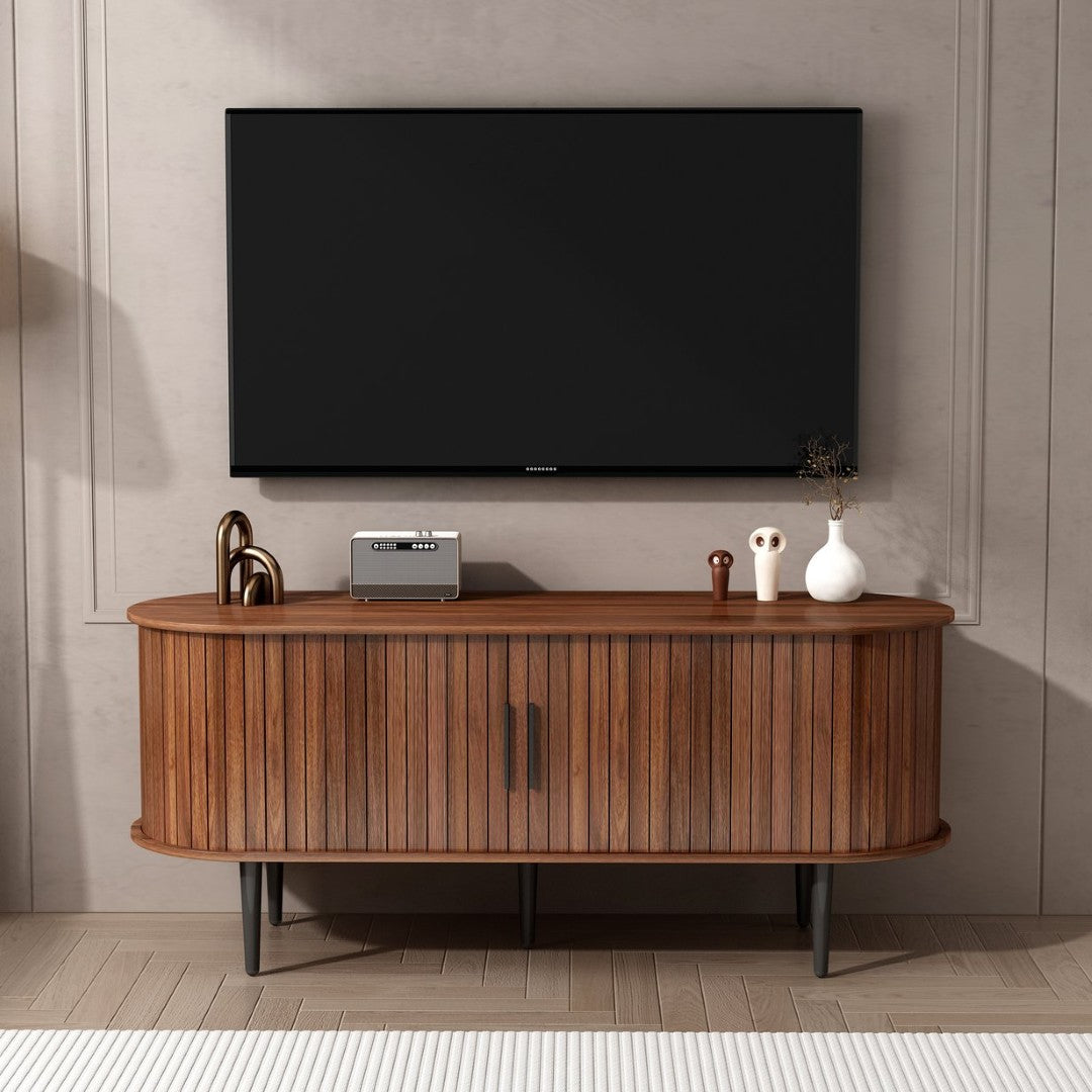 - 【Mid-Century Modern Style】 This stylish media console table instantly upgrades any home decor style with its fluted details, a curved silhouette, and wood grain. The simple and elegant design perfectly matches various furniture styles. It is not only a TV stand, but also can be used as a storage cabinet. It is perfect for living room, bedroom, office, etc.