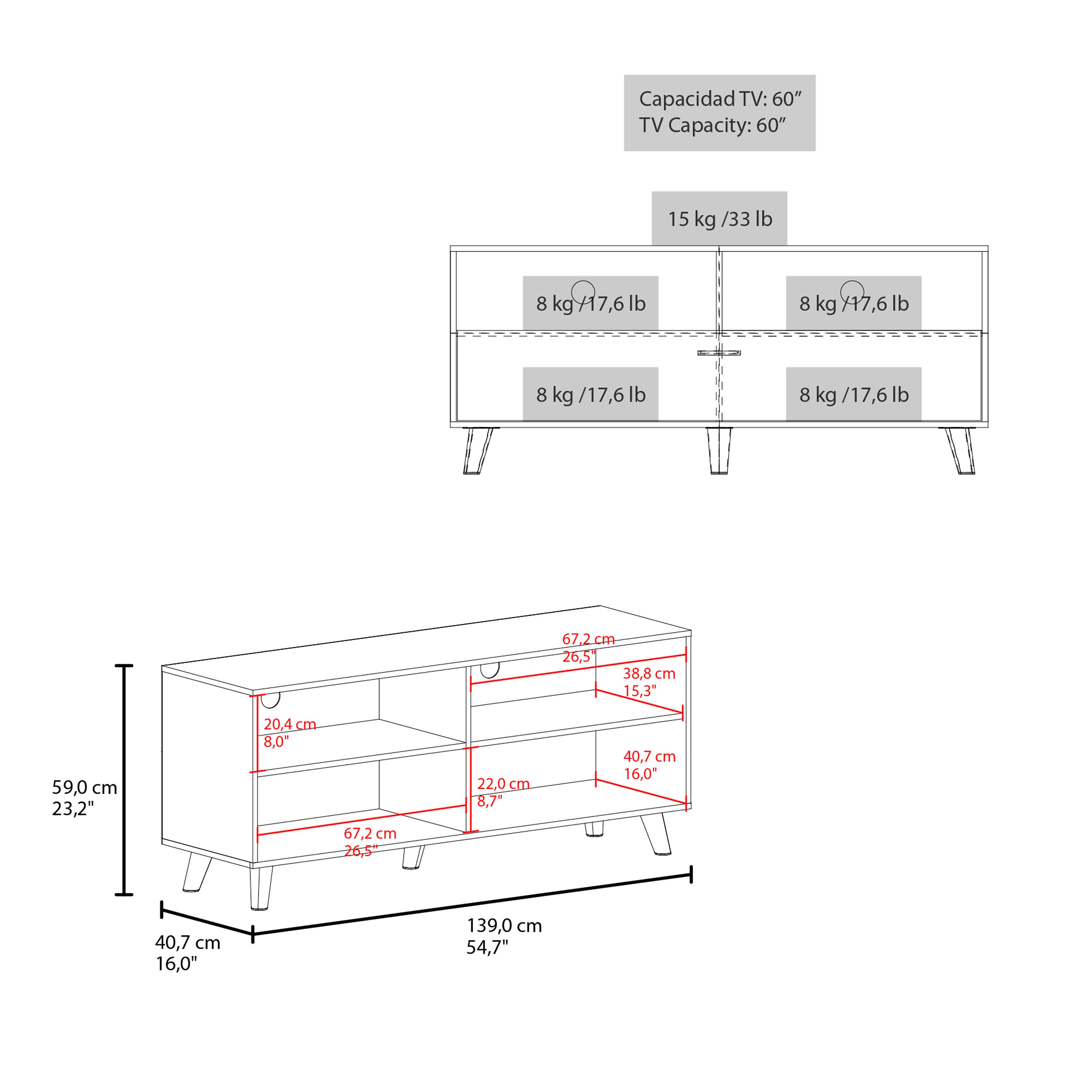 - Dimensions: H 23.2” x W 54.7” x D 16”Easy to clean with a dry cloth