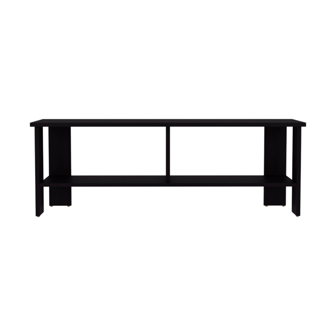 Give your living room a clean, modern anchor with this sleek black TV stand. Crafted from durable engineered wood and designed for everyday use, it offers organized storage for media components and a minimalist look that complements a variety of decor styles. Easy to assemble and built to last, it’s a practical solution for both compact and larger spaces.
