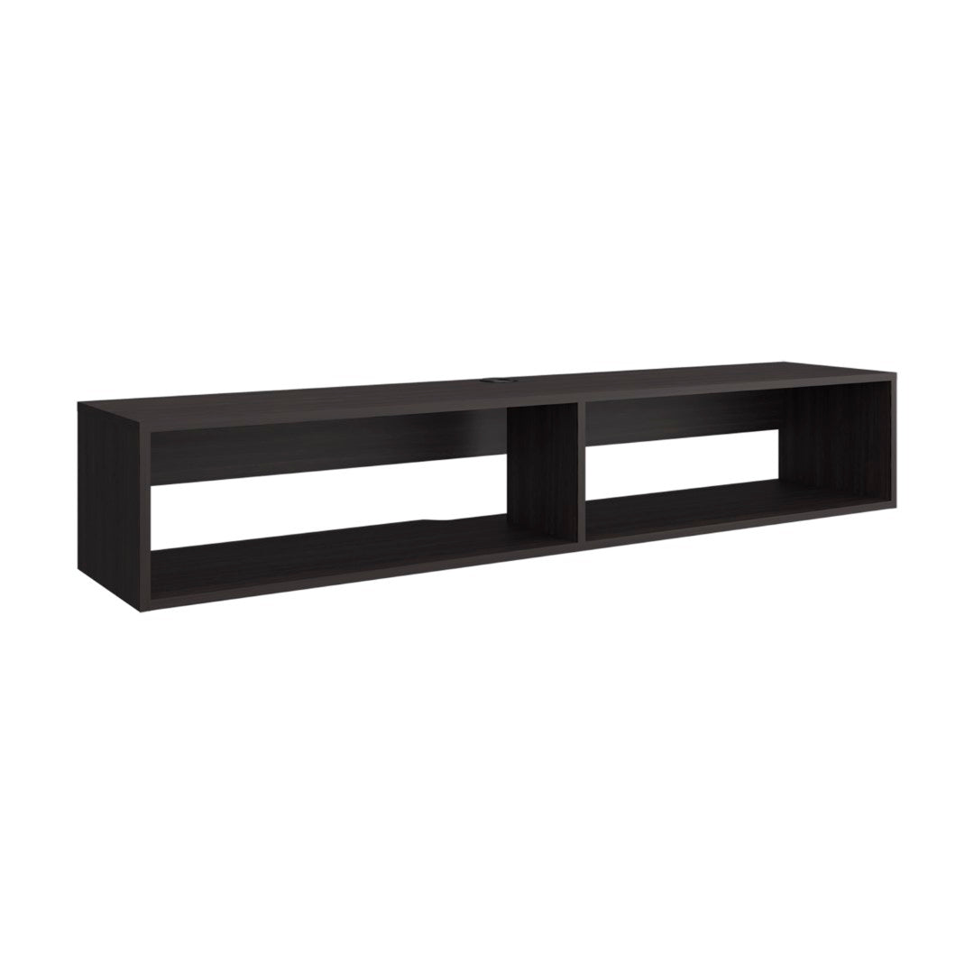 Upgrade your living space with this sleek, space-saving TV stand that combines modern style with practical storage. Finished in a rich Black Wenge, it offers a clean silhouette that complements contemporary decor while keeping media devices and decorative items organized and accessible.