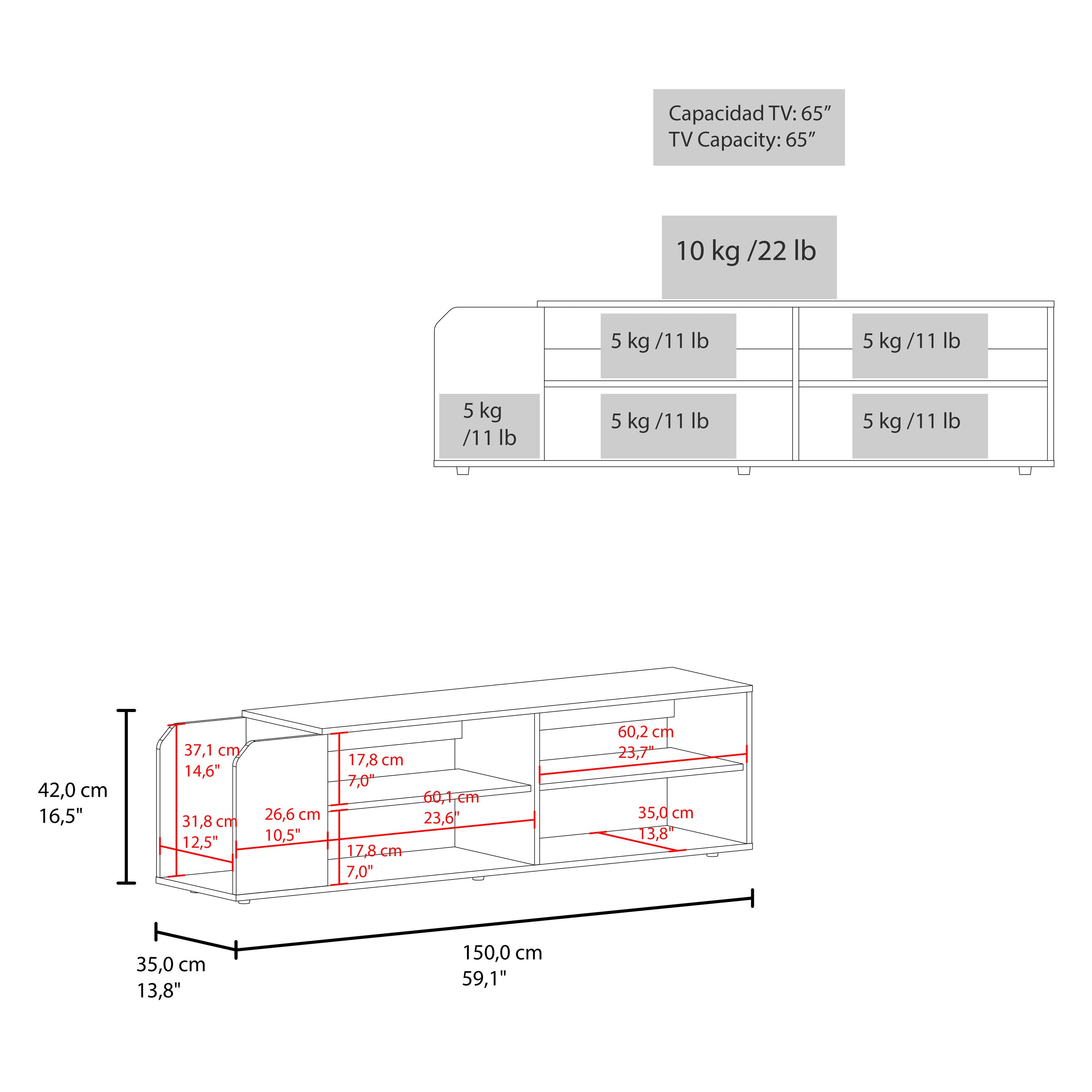 - The Stem TV Stand offers 4 spacious shelves, providing plenty of room for storing electronics, DVDs, media, or decorative items, helping you keep your living room organized.