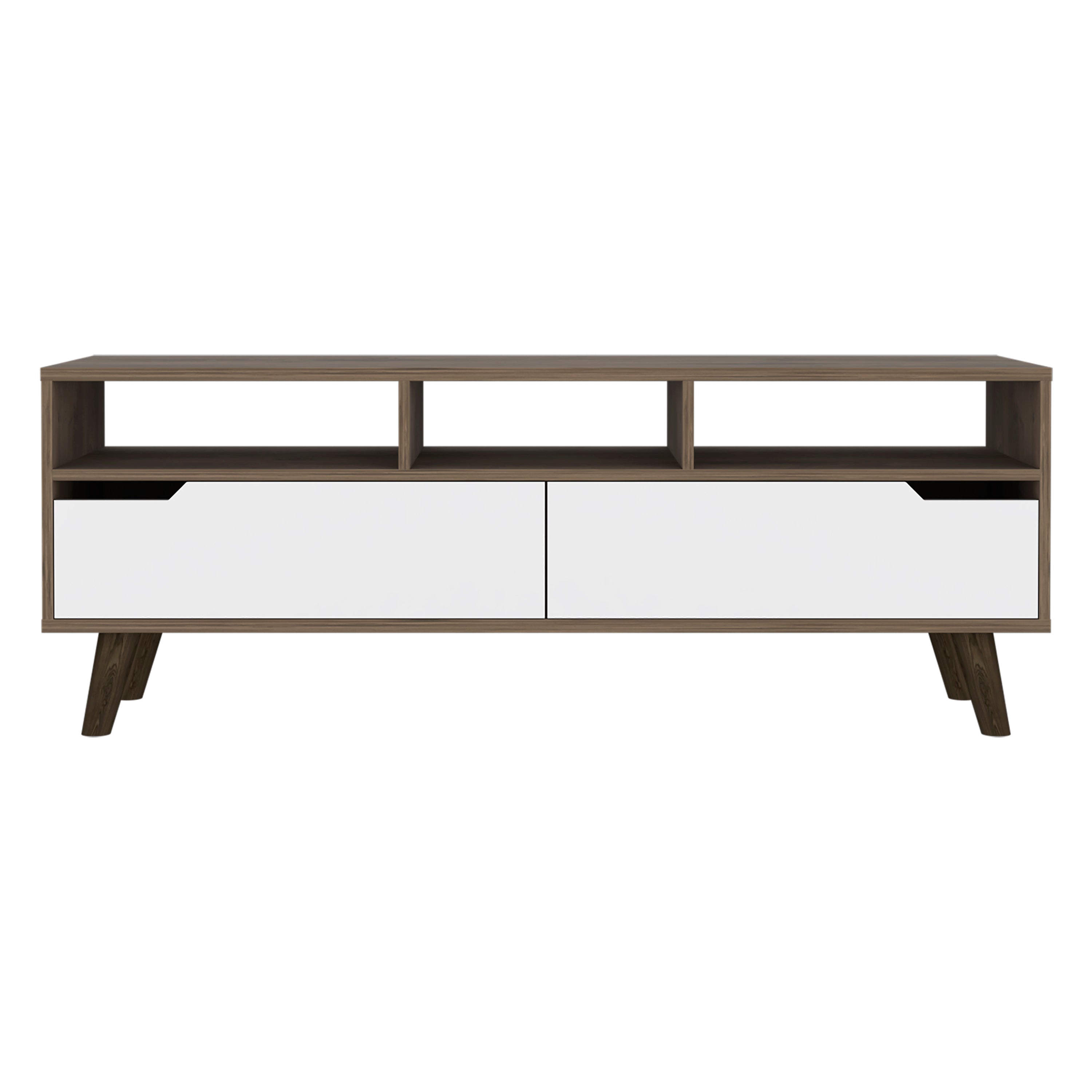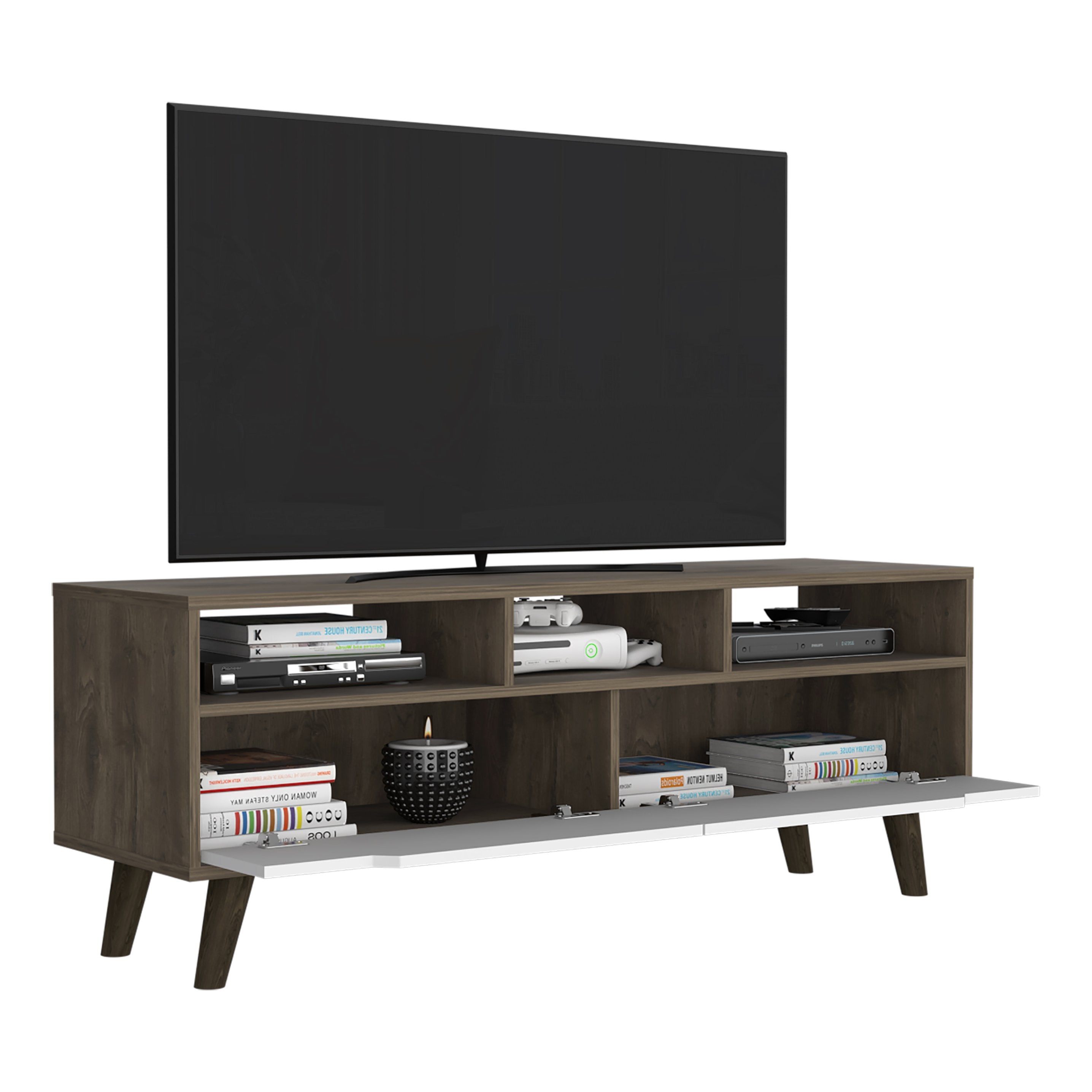 Create a warm, modern focal point in your living room with this dark walnut TV stand—designed for TVs up to 55" and built for everyday use. With a combination of closed storage and an open flexible cabinet, it keeps media components organized while maintaining a clean, contemporary look.