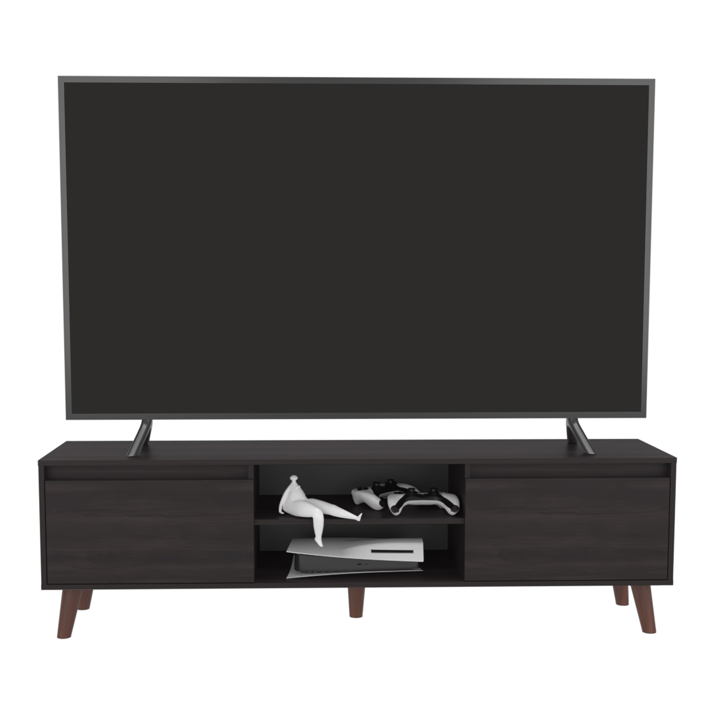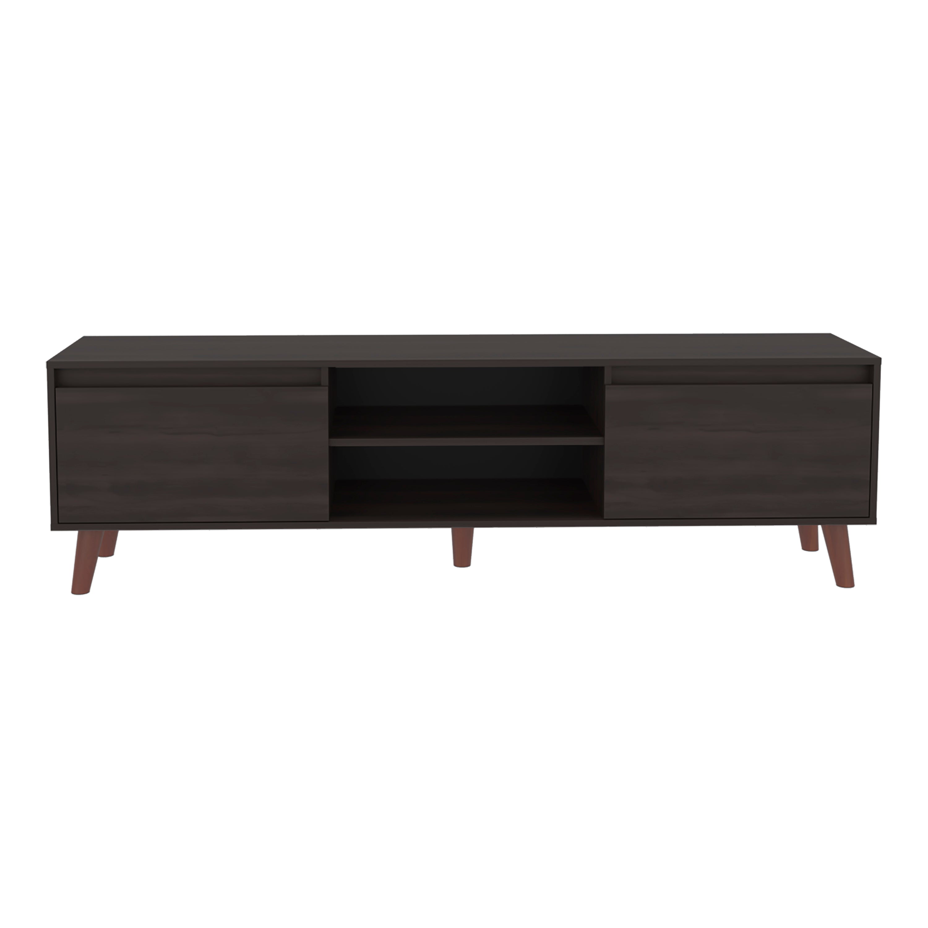 Upgrade your living room with a sleek, modern entertainment console that combines generous TV support, concealed storage, and open shelving for media components and decor. Finished in walnut with a durable melamine coating, this stand balances contemporary style with everyday practicality—ideal for TVs, gaming systems, and curated displays.