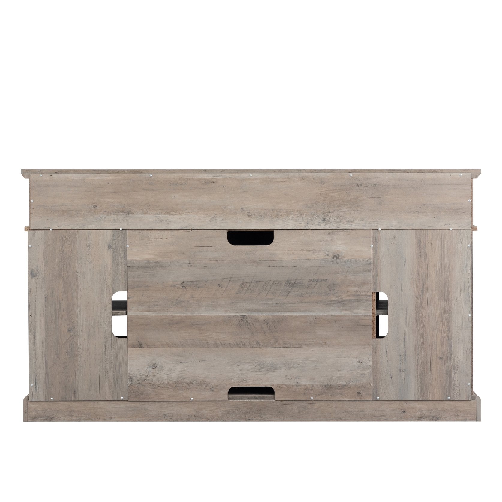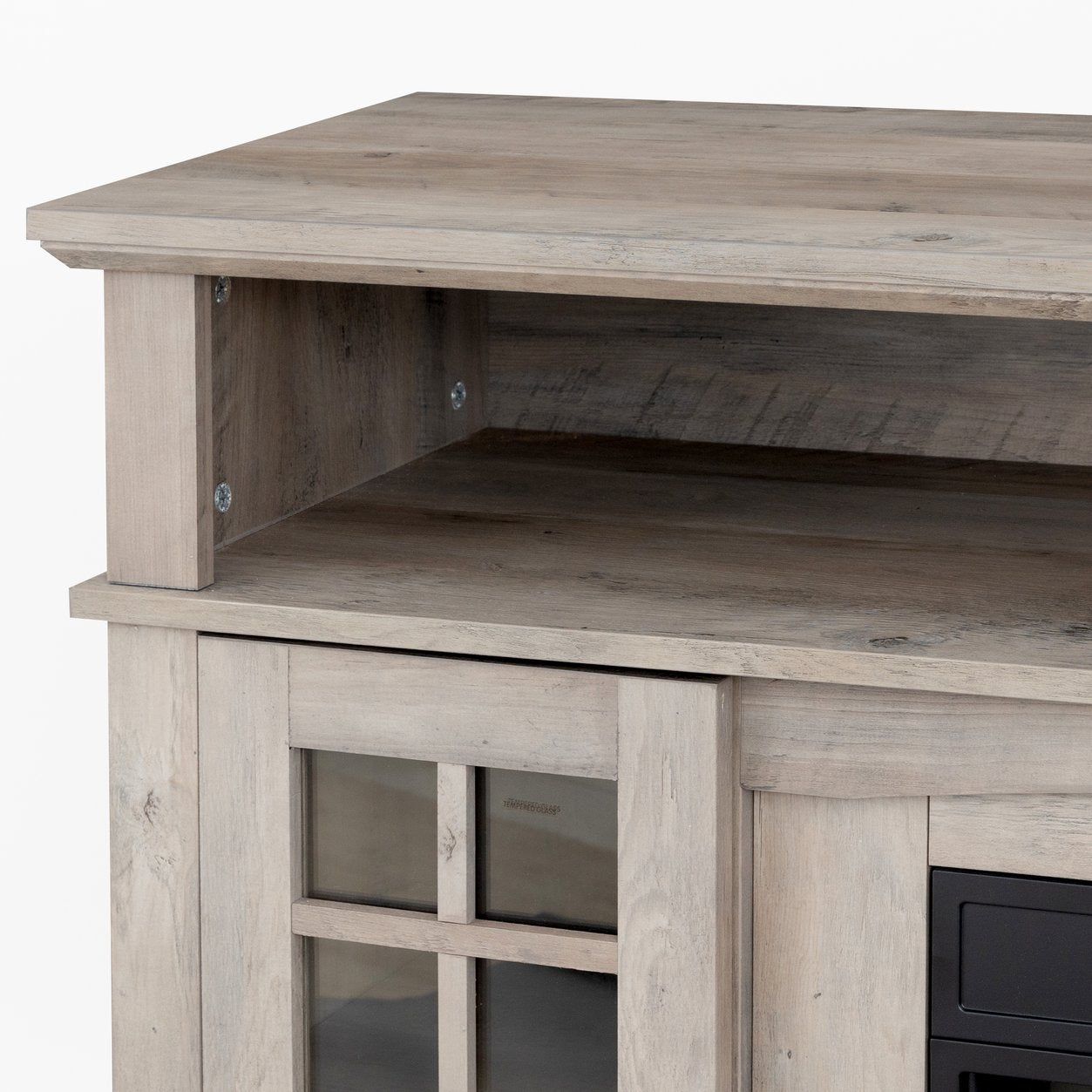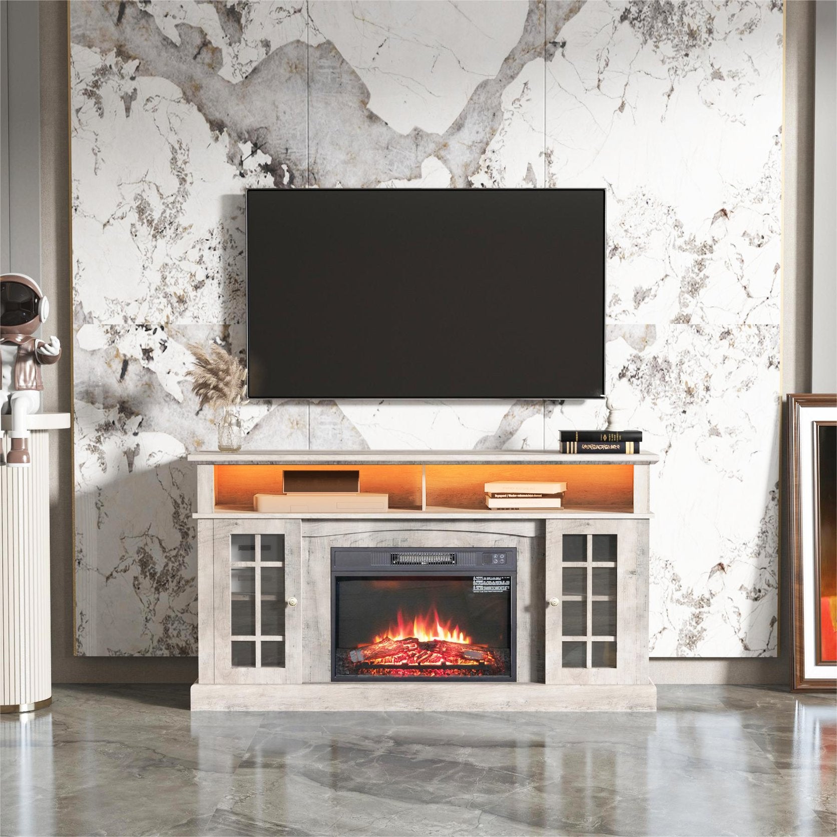 Bring warmth, ambiance, and smart storage to your living space with this modern media console featuring an integrated electronic fireplace. Designed for both style and functionality, it combines clean lines and a subtle gray finish with efficient infrared heating, realistic LED flame effects, and Bluetooth-enabled lighting control—perfect for creating a cozy focal point in your living room, den, or media area.